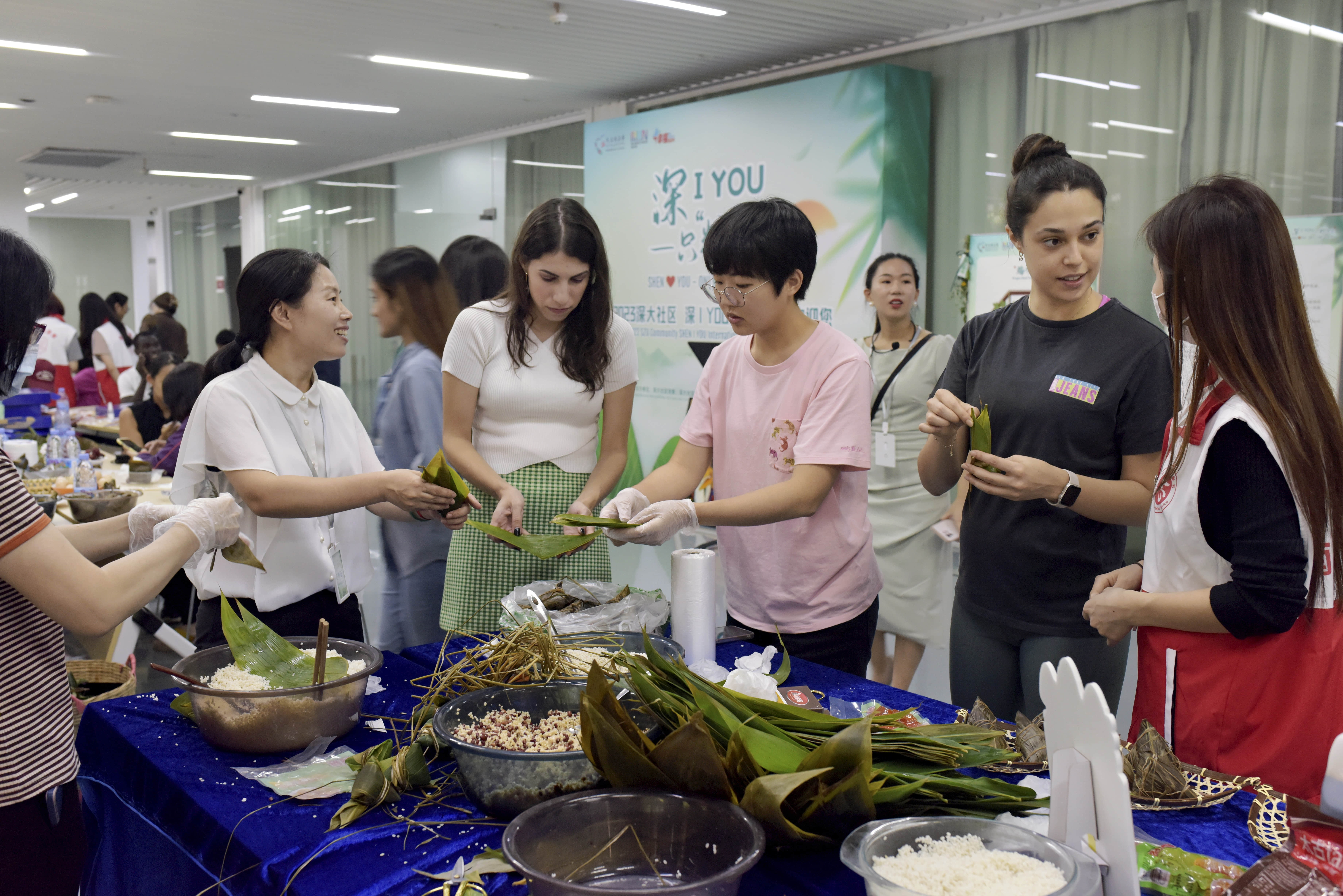 On the afternoon of June 21, to celebrate the Dragon Boat Festival, more than 50 foreign students from the College of International Exchange gathered together to experience the Dragon Boat Festival folk culture.