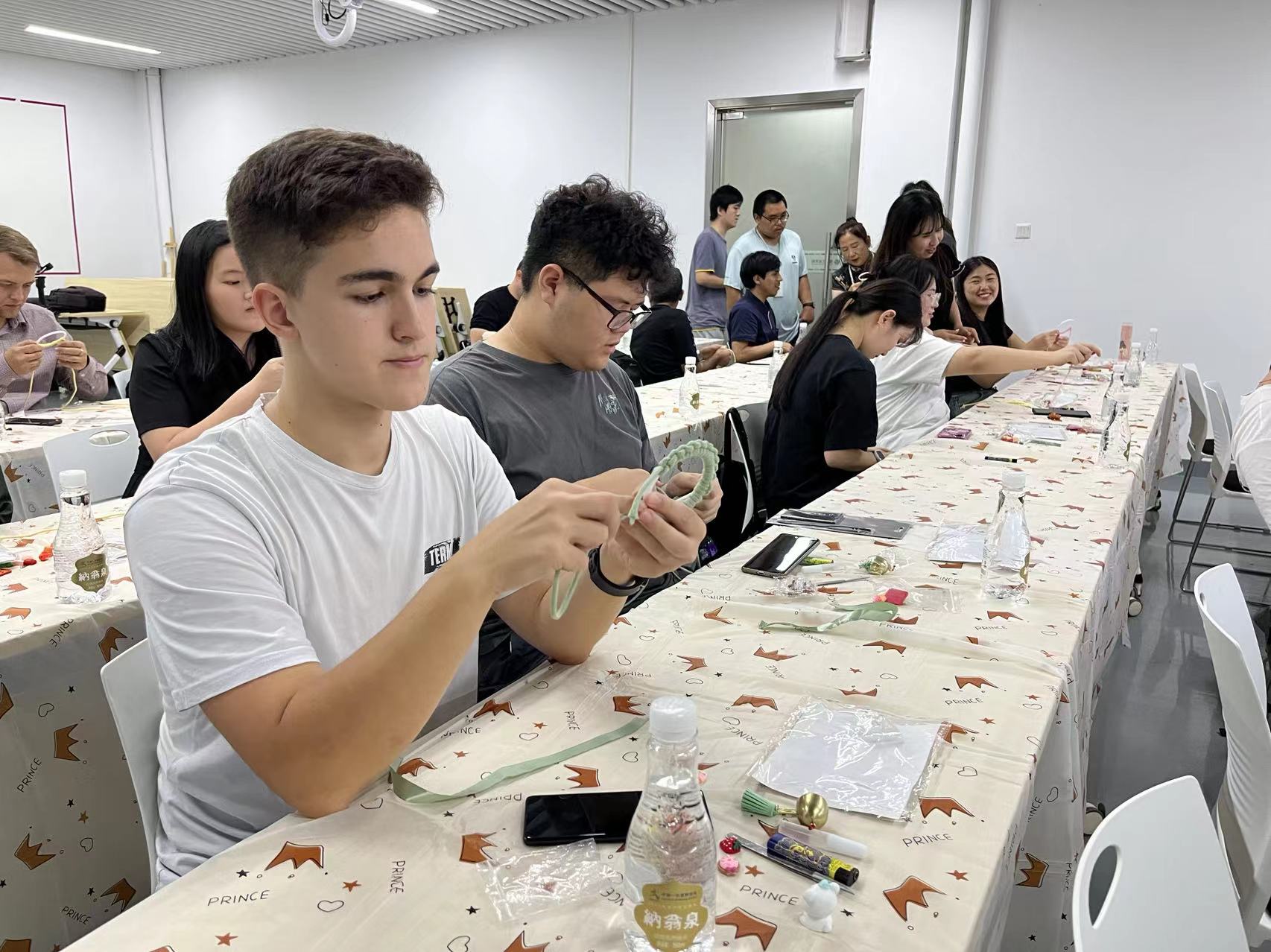 In the afternoon of November 3, 2023, International students of our school participated in the intangible cultural experience activity in Room 201 of Zhaoxi Building: Glazed hand-Hand woven rope