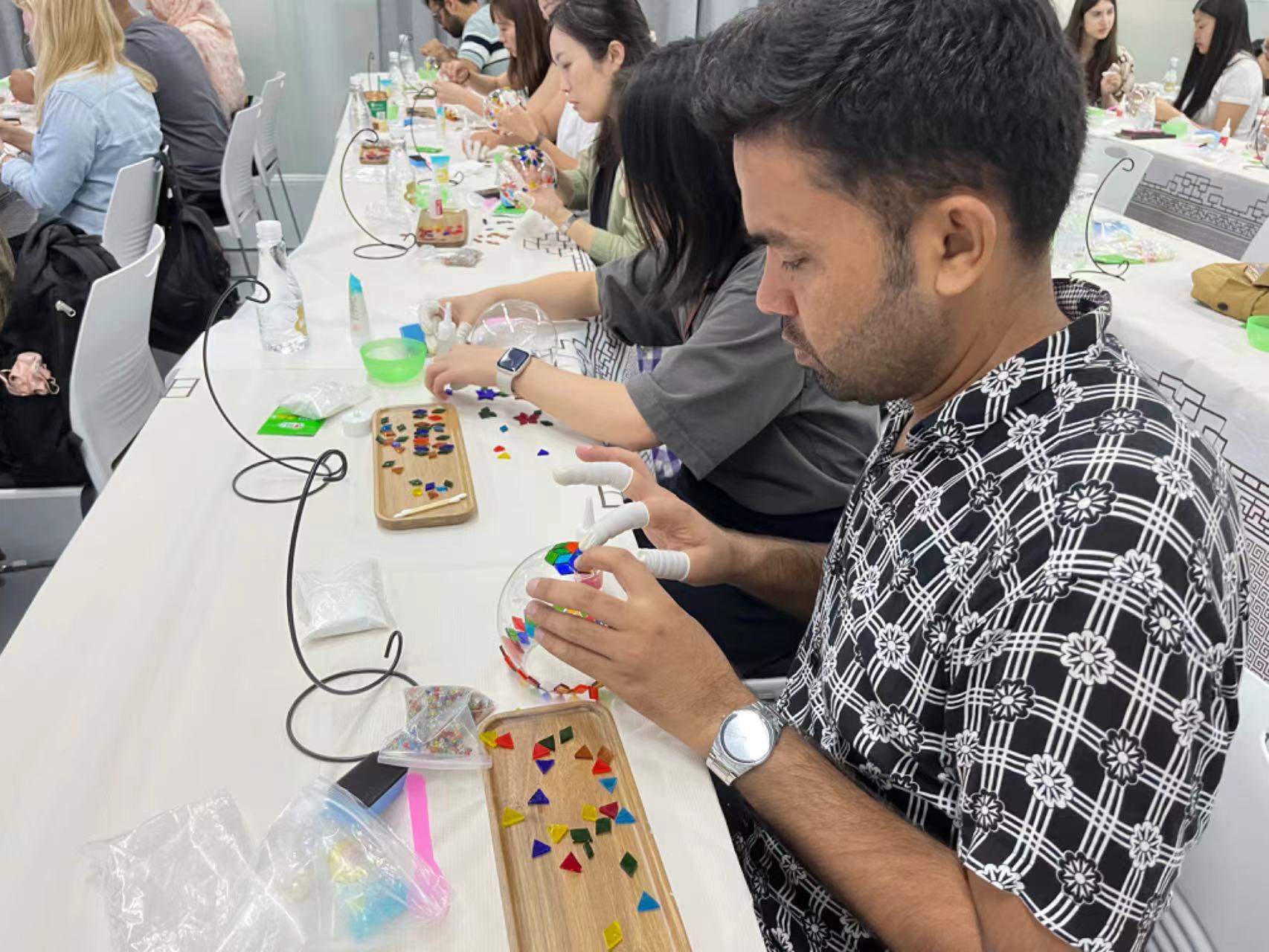 The activity site was very warm, and each seat was prepared with the materials and tools needed to make the glass candlestick, so that students could easily invest in the production.
