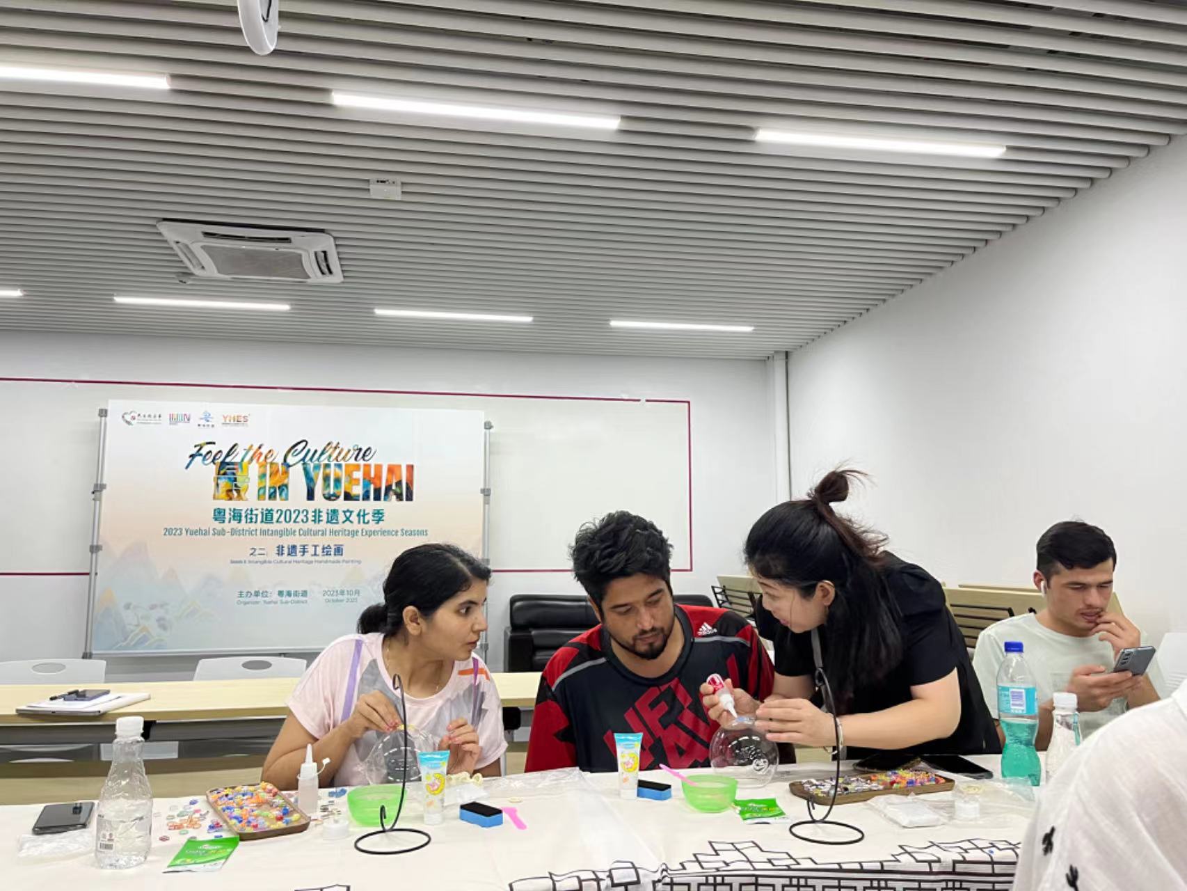 During the production process, the classroom filled with a strong artistic atmosphere. The international students communicate with each other, share their own knowledge and experience, and from time to time, laughter and cheers came.