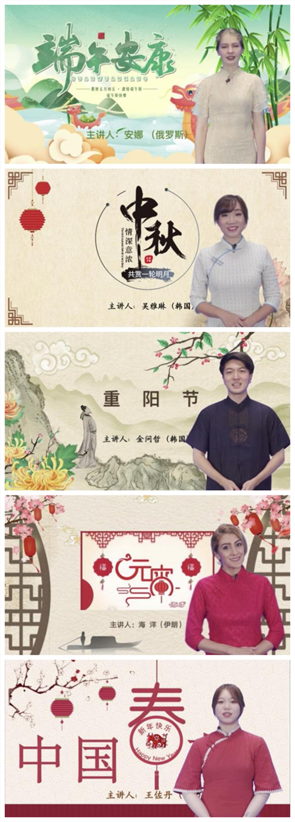 在学院大力支持下,指导老师王鸿雁制定了参赛的相关计划,定以团体形式参赛,并决定以中国文化作为切入点,制作中国传统节日的系列课程,分别选取了《端午节》、《重阳节》、《中秋节》、《春节》、《元宵节》作为参赛课程。接下来为了集思广益,我们首先是请信息中心的刘锐老师指导留学生如何制作设计教案、怎样制作精美的授课PPT。然后是教案的撰写及PPT的制作修改,经过反复地修改打磨,同学们开始登上讲台试讲。随后邀请相关专家对留学生的课堂教学进行分析点评。每周四的碰面会同学们讲课,王老师和杨爱姣副院长就同学们的教态、语速、表情、发音提出精细的意见。经过两个多月的努力,经过一次次地打磨和雕琢同学们终于充满信心地走进摄影棚,但是面对演播室摄像头,新的挑战又摆在同学们面前,经过一次次地练习同学们从最初的诚惶诚恐、结结巴巴到最后的泰然自若、侃侃而谈,两个月余的打磨同学们进步飞速!参赛同学们也纷纷表示通过整个微课大赛的准备、授课过程使自己真正找到了国际汉语教师的感觉,找到了今后学习中努力的方向。最终五位留学生顺利提交参赛作品,期待他们能获得好成绩!