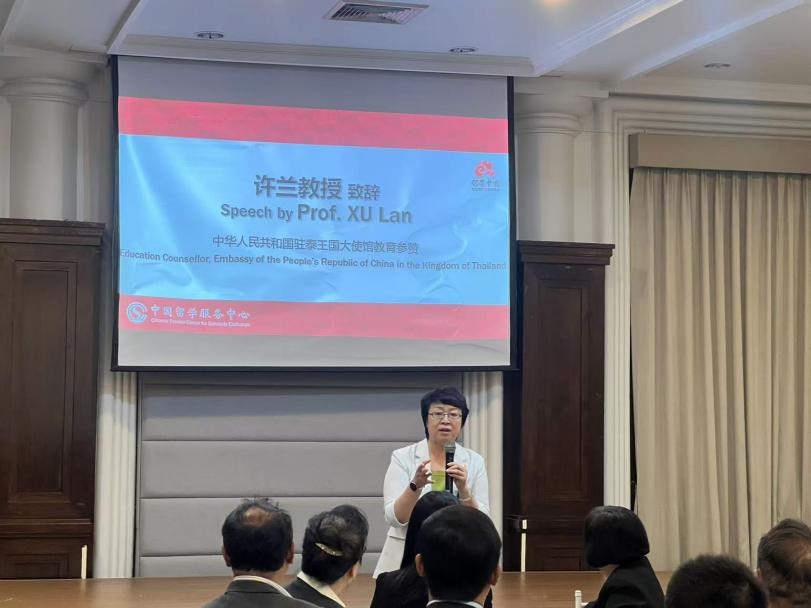 此外,28日晚,深圳大学代表组团于泰国法政大学参加了留学中国校际交流会。交流会上泰国留学中国大学校友总会主席丁佩佩、泰中同学会顾问陈丰媛、泰国法政大学国际事务副校长Assoc.Prof. Dr. Supreedee Rittironk、驻泰国使馆教育参赞许兰依次发言,对参展学校的到来表示热烈的欢迎,同期待今后与中国高校的开展更加深入合作关系。同时,深圳大学代表组团也与当日参加交流会的商会大学、川登喜大学的相关参会人员进行了友好交流,我院老师也对学校的留学长期及短期项目做了简单介绍,双方对未来的合作机会表示了积极的态度。
