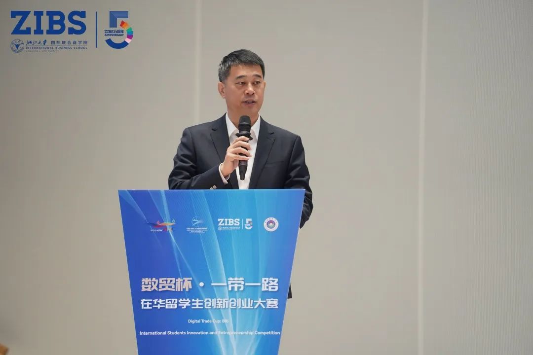 现场,浙江大学国际联合商学院 (ZIBS) 院长贲圣林为本次大赛致欢迎辞。ZIBS作为一所国际化、数字化、创新性的学院,一直以“改变世界、引领未来”作为目标。ZIBS也是产、学、研一体化的新型商学院。以本次大赛为新的起点,ZIBS创新创业中心将持续推动包括创业导师指导、路演训练、资本对接等全生态、全流程服务,整合校内外与国内外高校的创新创业及产业界资源,进一步助力创业团队从 “0”到“1”再到“N”的加速发展。