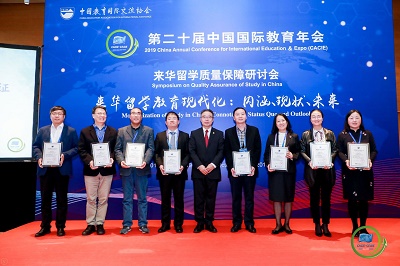 随后举行的2019年度来华留学质量认证证书授予仪式上,中国教育国际交流协会秘书长赵灵山为通过认证的22所院校颁发证书。这标志着我校来华留学教育正式通过国家质量认证,并进入到国家来华留学教育第一方阵。