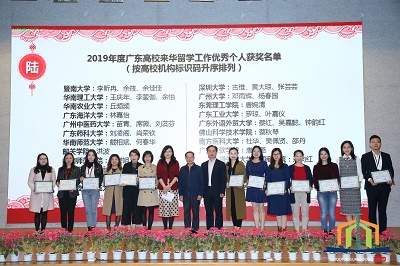 会议对广东省来华教育工作的优秀个人及集体进行了表彰。我校与暨南大学、华南理工大学等8所高校获得2019年度广东高校来华留学工作“先进集体奖”;我校国际交流学院古维、黄大琼、张芸芸等三位同志获得2019年度广东高校来华留学工作优秀个人;我校国际交流学院王庆国获得广东来华留学教育工作“荣誉贡献奖”。