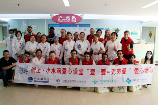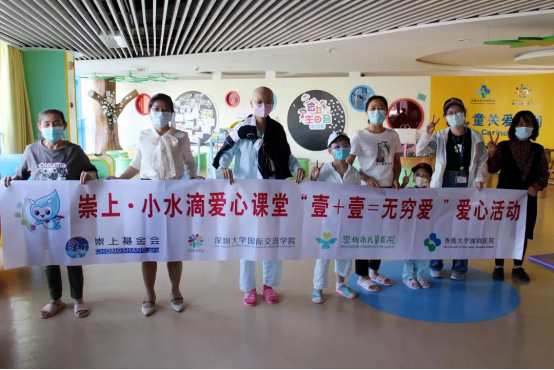 深圳大学国际交流学院与崇上基金会合作举办“小水滴爱心课堂“壹+壹=无穷爱”的送温暖活动,自2019年11月11日开展以来,一直得到了社会的广泛好评。社会上越来越多的爱心人士参与进来,更多人了解血液病患儿、罕见骨病患儿等大病儿童的困境,也在近距离地接触中认识他们充满能量、活力的另一面!这一系列的活动由深圳大学国际交流学院党员黄维维老师热心组织。