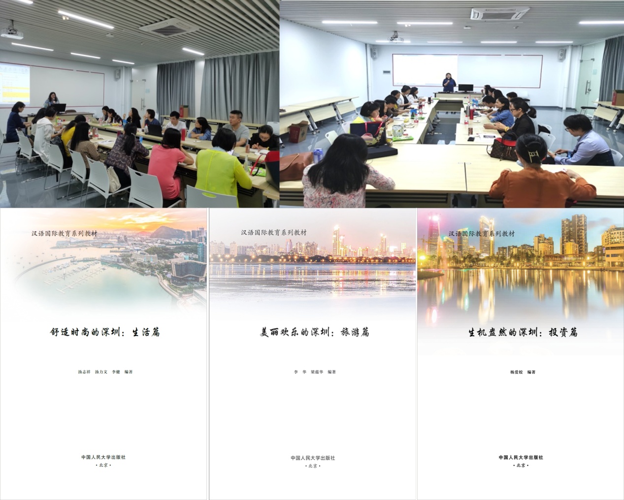 会议最后杨爱姣副院长展示了《国际交流学院教研活动集》、《国际交流学院对外汉语课堂实录》等近20万字的文献资料,伴随图文并茂的系列报道,回顾了我院的教研历程,并祝贺李健、梁蕴华及李华(师范学院)等老师参编的汉语国际教育教材《生活在深圳》、《旅游在深圳》《投资在深圳》(共30万字)顺利出版,呼吁大家积极为《对外汉语偏误分析》论文集投稿。最后她总结说,疫情对全球留学生教育的冲击最大,在学校和学院的全力支持下,我院语言系本学期比上学期增加6个班多招61人就读,成绩不俗,这是深大老师共同奋斗的结果。她鼓励全体老师积极开展教研活动,刻苦钻研教材教法,为学校的教研工作、双一流筹备工作尽一份力。