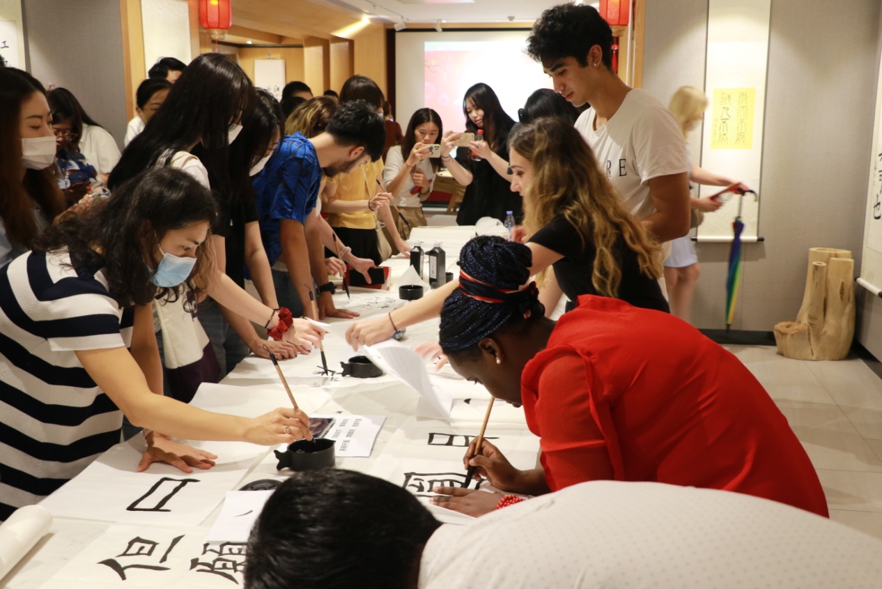 时值中秋,为了让在异乡求学的外国留学生感受中国传统节日的氛围,更好地理解中国传统文化,讲好中国故事,深圳大学国际交流学院携手深圳东方美术馆,共同举办深圳大学国际学生中秋传统文化体验活动。学院领导、教师和来自世界各地三十多个国家和地区的国际学生欢聚一堂,以中国传统文化为主线,赏民乐、做月饼、剪纸,手绘花灯、看书法展、写书法等,感受“中国味道”的同时,体验中国传统中秋文化。