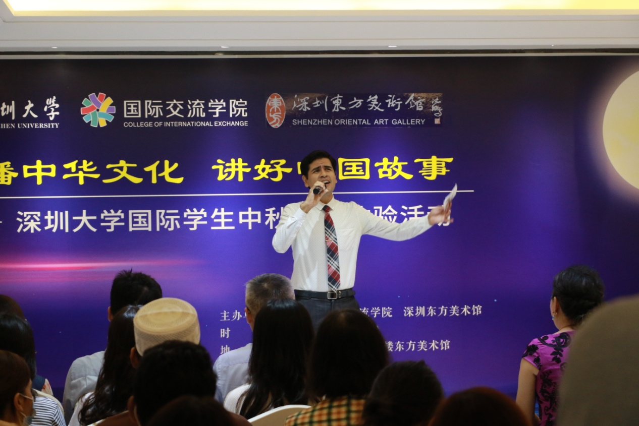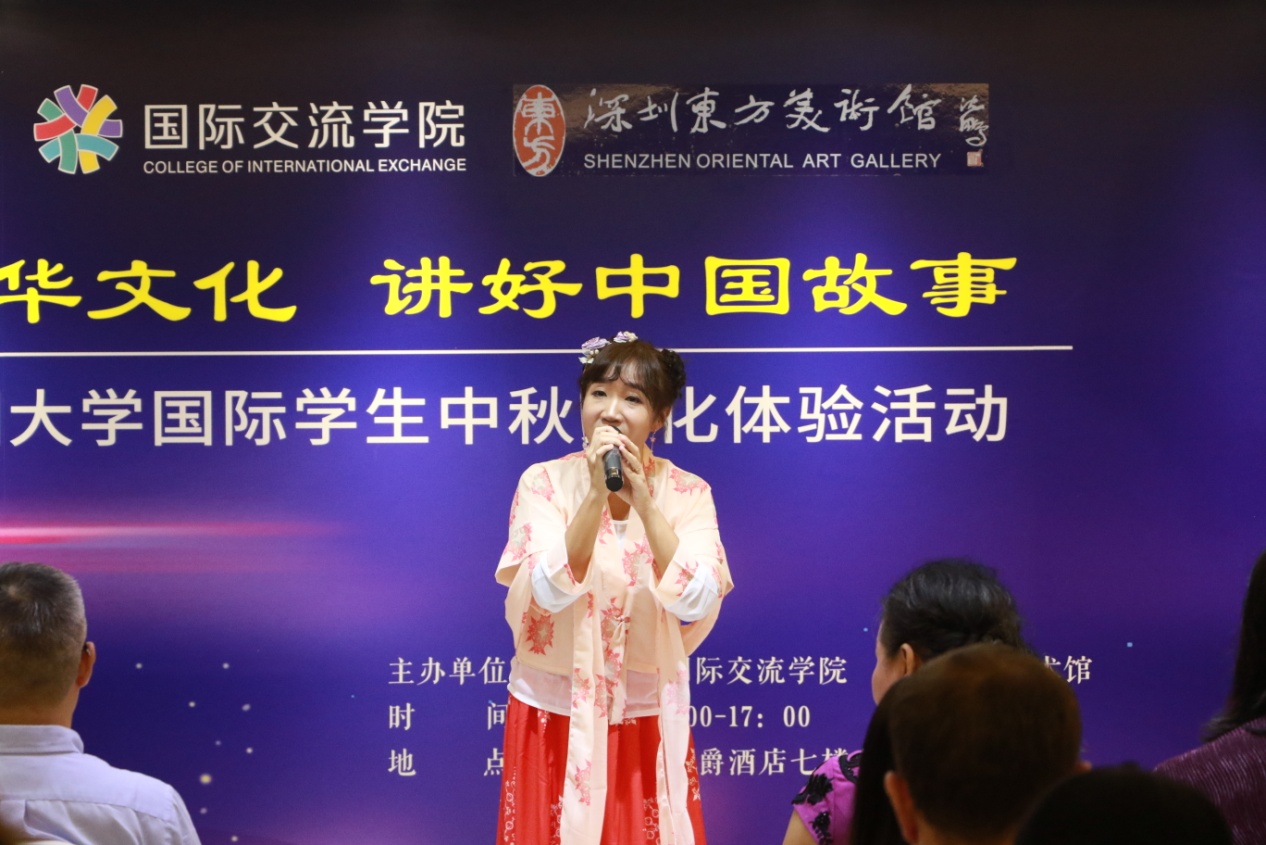活动以中秋文化作为开场,通过视频介绍了中秋节的起源、发展以及全球华人庆祝节日的传统文化。在一派喜气洋洋的节日氛围中,深圳大学国际交流与合作部、深圳东方美术馆以及深圳大学国际交流学院的相关领导向参加活动的国际学生们致以了节日的问候。