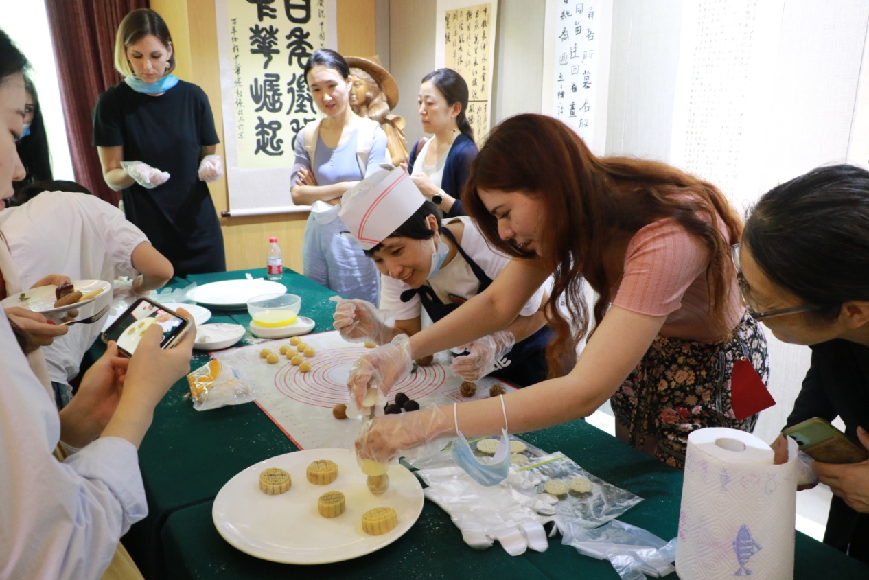 在接下来的文化体验环节中,中外师生们共同体验了制作中秋月饼、剪纸、花灯、写书法等中华传统民俗活动。现场氛围热闹而又温馨,在制作过程中,国际学生纷纷拿起手机拍下自己的月饼,给远方的亲朋好友分享在中国庆祝中秋接的时刻。通过体验式互动活动,促进国际学生对中华传统文化的理解和认知,加深国际学生与传统文化的情感联结,更好地理解中华传统文化,讲好中国故事,大家纷纷表示,活动让他们在亲自动手中感受到传统文化带来的快乐,也更好地理解了中国传统佳节的意义。