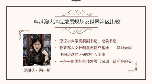 在谈及粤港澳大湾区的发展规划时,陶教授从粤港澳大湾区基本概况、粤港澳大湾区的制度特征、粤港澳大湾区五大特点、粤港澳大湾区实现路径、世界四大湾区形成机理比较五方面进行阐述。