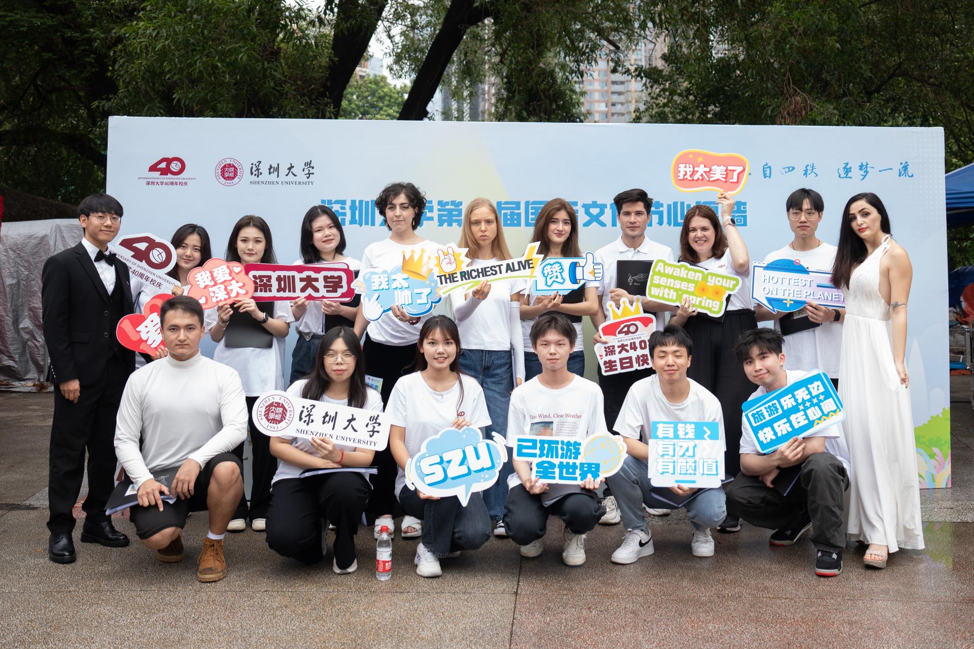 2023年5月13日,由国际交流学院承办的深圳大学第六届国际文化节活动在粤海校区石头坞广场隆重举行。本届国际文化节活动以“迎四秩校庆,展五洲风情”为主题,内容丰富,形式多元,包括各国传统游戏体验、各国传统舞蹈表演、各国传统服装走秀、各国传统美食品尝、留学生合唱团演出等,旨在展示世界各国独具特色的文化风情,为全校师生与校友们提供了解世界的窗口。来自我院24个国家的留学生在文化节上设立本国文化展台,现场进行了精彩的文艺演出。今年恰逢深圳大学40周年校庆,当天又值深圳大学校友返校日,中外师生、返校校友欢聚一堂,展民族风采,观世界风情。