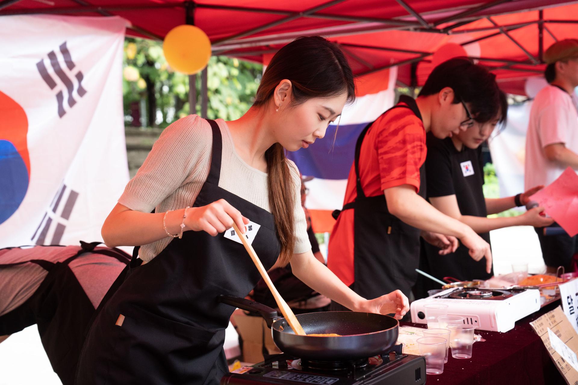 现场留学生们身着节日盛装,在展台前热情展示本国的特色服饰、美食和手工艺品,中外师生、校友们流连于各国展台合影留念,领取“护照本”在各个展台盖章“打卡”集齐纪念章,品尝留学生们亲手制作的特色美食,包括阿根廷的牛奶焦糖卷、德国的香肠土豆沙拉、奥地利的维内亚鸡排、日式炒面、韩国的泡菜饼、巴基斯坦的鸡肉香饭、法国的奶酪与甜点、土耳其的烤肉、泰国的芒果糯米饭、埃塞俄比亚的咖喔炖鸡,不一而足。现场观众除了可以大快朵颐地品尝各国美食,还体验了独具特色而丰富有趣的游戏,如印度海娜、眉心红点体验、中国的汉服体验、马来西亚的冲格游戏等。畅游各国展台,大家既体验了不同国家的民族习俗,也感受到了多姿多彩的文化风情。世界多彩文化在本届国际文化节上交相辉映,各国友人与师生、校友们共享文化交流的盛事。作为深圳大学国际交流学院一年一度的文化重头戏,本届国际文化节在展示世界各地优秀文化的同时,也重视向国际学生讲好中国故事,让来华留学生通过多种形式了解中国。