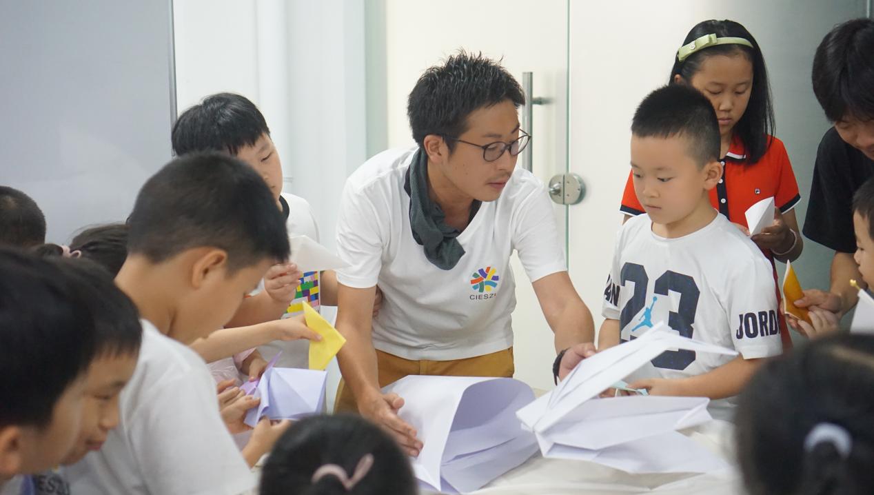 日本的伊藤行辉老师(ITO KOKI)用他简单生动的肢体语言,带领小朋友踏上了通往精彩日本文化的认识之旅。不仅是饮食、习俗、卡通大家族的成员们,他还介绍了日本折纸文化。小朋友学习千纸鹤、青蛙,不亦乐乎。