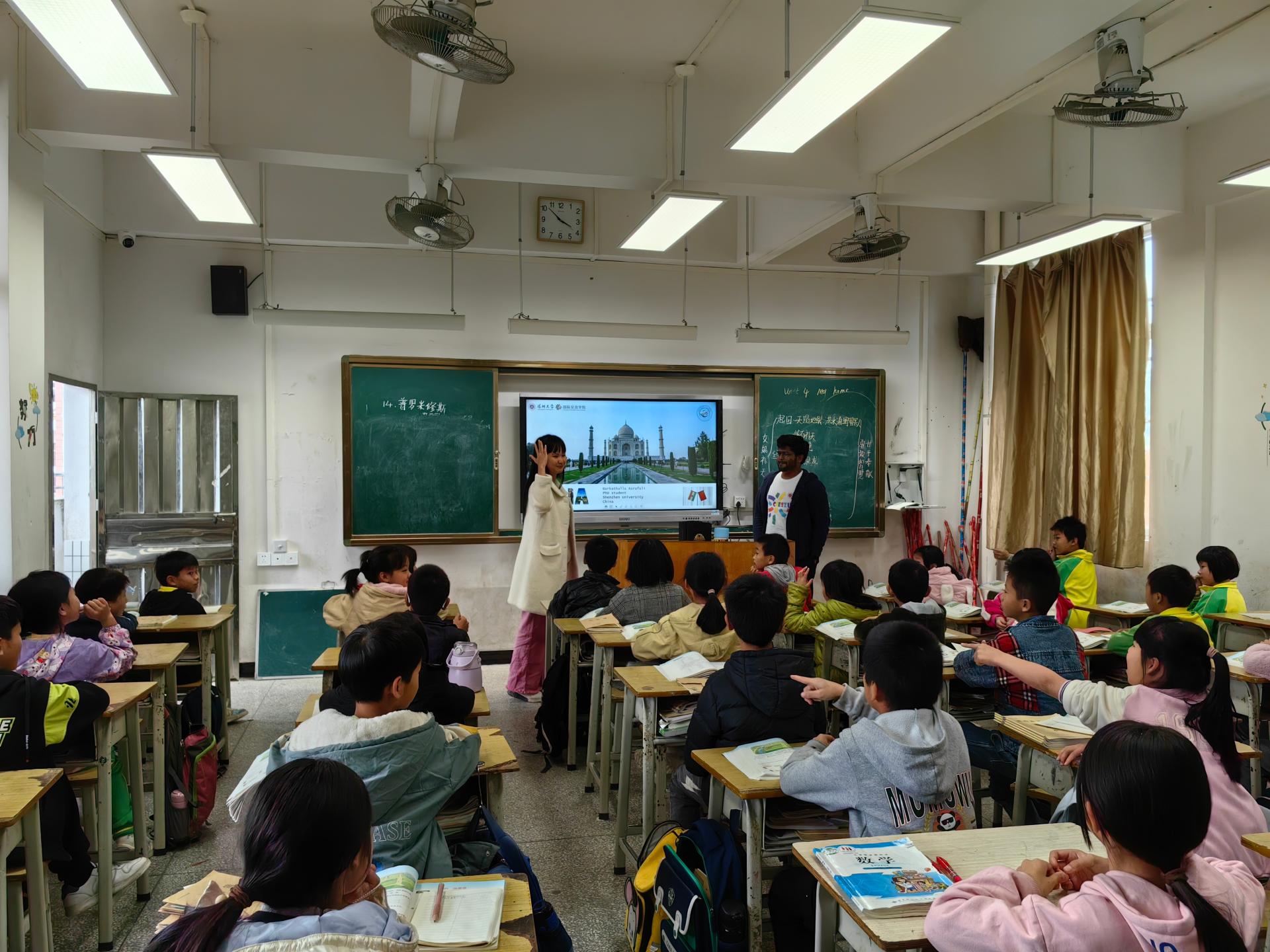 最后,同学们走进当地小学。刚踏入校门,同学们就受到了小学生们的热情欢迎。随后,经过一系列的准备之后,同学们进入小学课堂,与小学们进行面对面的交流,向他们介绍世界的情况。