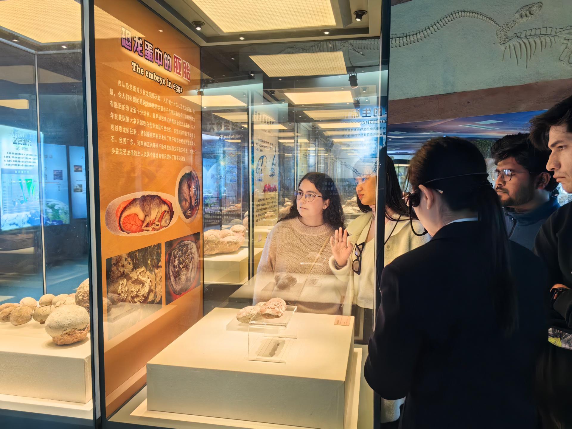 河源是中华恐龙之乡。随后,同学们来到河源恐龙博物馆参观恐龙蛋化石展览,进一步深入了解河源的历史,感受河源的独特魅力。当看到管内众多的恐龙蛋化石,同学们不禁感到非常震撼,没想到中国河源曾经也有恐龙在这里生活过,留下了许多痕迹,而且这些恐龙蛋化石至今都还仍旧保存得很好。同学们纷纷围在讲解员周围,一边听着讲解一边触摸历史的脉搏......仿佛穿过悠长的时间隧道,回到了那个时代。
