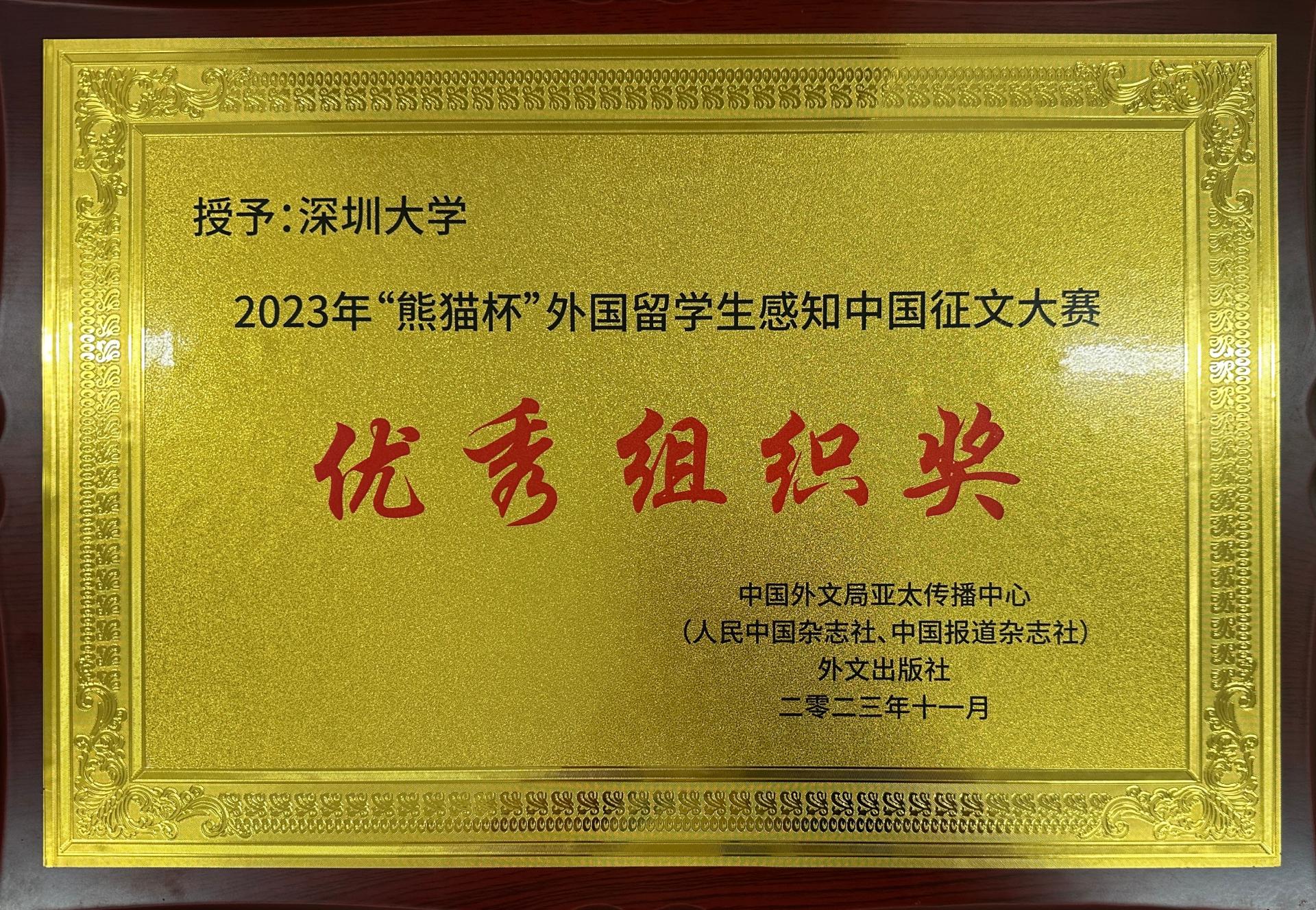 首届“熊猫杯”外国留学生感知中国征文大赛由中国外文局、浙江省委宣传部指导,中国外文局亚太传播中心(人民中国杂志社、中国报道杂志社)与外文出版社主办,浙江传媒学院承办。自8月启动以来,我院积极组织学生参赛,最终荣获“优秀组织奖”,留学生钱理获二等奖,娜提亚、欧马分别获三等奖,三位优秀指导老师荣获优秀导师奖的喜人成绩。