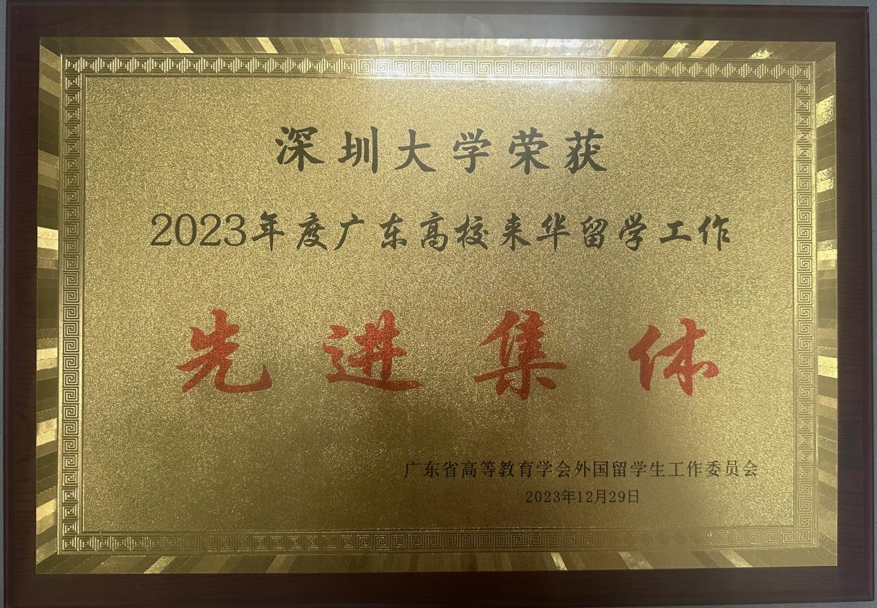 图为深圳大学荣获2023年度广东高校来华留学工作先进集体
