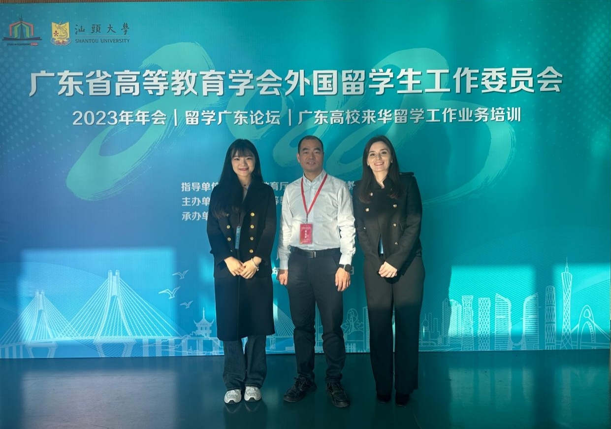 2023年12月28—29日,广东省政府来粤留学生奖学金实施十周年成果展及广东省高等教育学会外国留学生工作委员会2023年年会在汕头大学举行。我校国际交流学院院长潘燕春、国际交流学院辅导员张倩婷、留学生代表娜提亚(GUGUCHIA NATIA)参加展览并出席会议。
