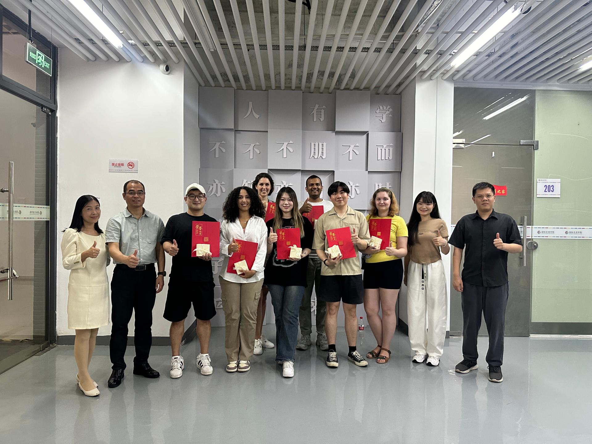潘燕春院长、秦晴副书记为每位参与分享的留学生颁发了荣誉证书和礼物,以鼓励他们在文化交流方面所作出的贡献。最后,与会人员一同合影留念,记录下这一难忘时刻。