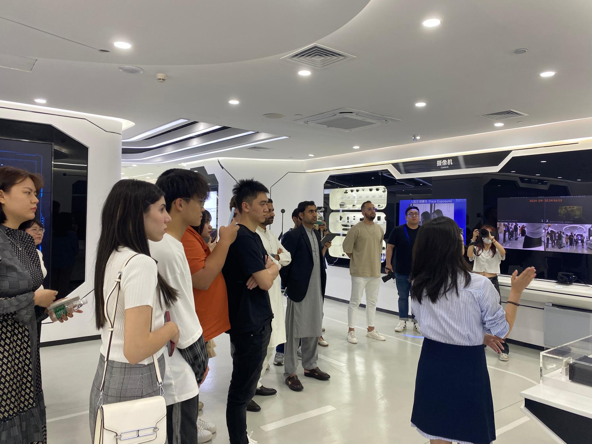 留学生们到达锐明技术后,首先在锐明技术工作人员带领下进入展厅,分别参观了锐明技术的终端产品、可靠性技术、摄像机、人工智能技术、核心技术及其应用领域(如公交、矿车、工程车、出租车、警车等),同时也对FCW前车报警系统、UFCW虚拟保险杠报警系统、LDW车道偏离报警系统、LDW车道偏离报警系统、PCW行人碰撞预警系统等AI技术进行了深刻的了解。