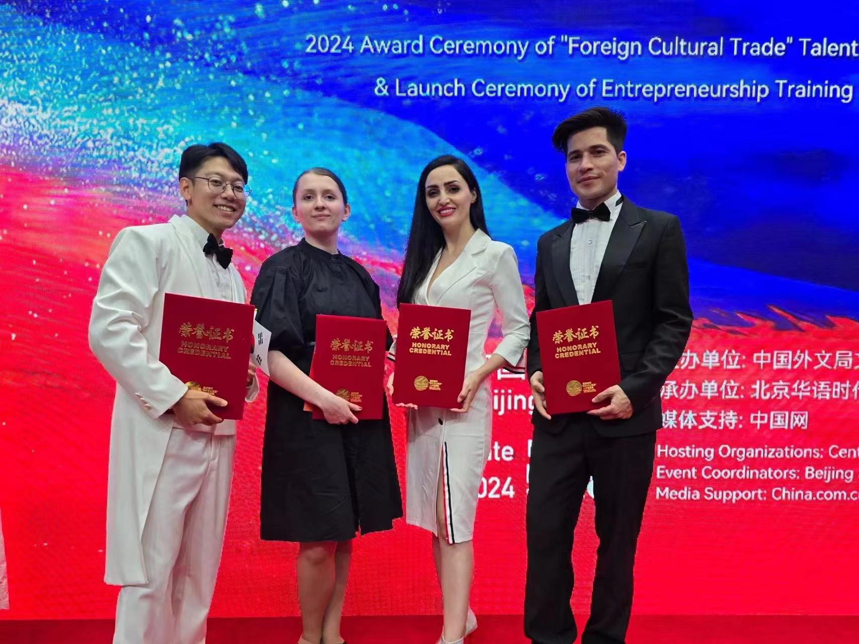 5月28日,由中国外文局文化传播中心和华语教学出版社联合主办的2024国际青年“对外文化贸易”人才选拔赛颁奖典礼暨归国创业培训启动仪式在北京举行。我院副院长区莹带领四位留学生代表赴京参与活动并领奖。