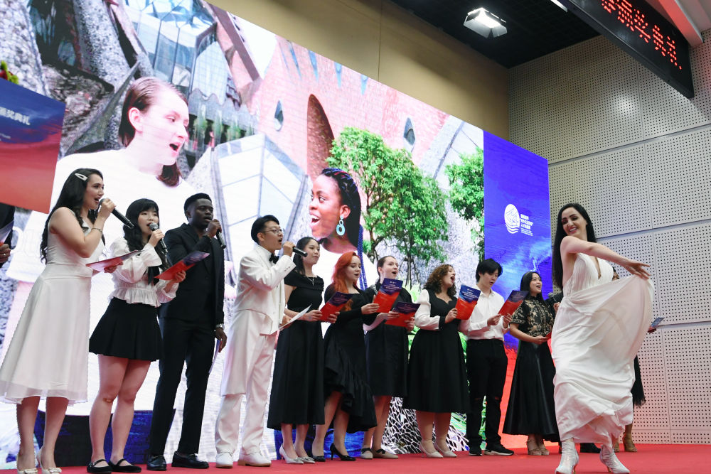 在颁奖典礼上,由留学生组成的“留学中国云合唱团”表演合唱节目《梦想之路》。我院韩国留学生申文燮和俄罗斯留学生娜佳斯分别位列演唱队列左四与左七,伊朗留学生颜如玉于前排伴舞