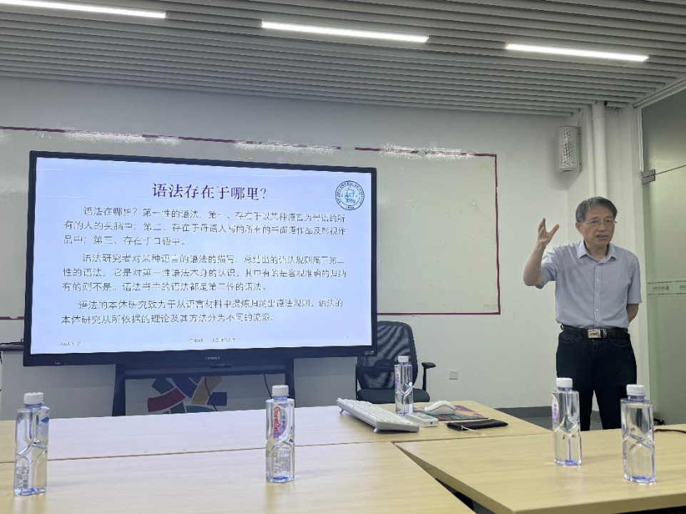 2024年5月24日,国际交流学院成功举办了一场题为《汉语语法研究及国际中文教学语法谈》的学术报告。本次报告由北京师范大学的丁崇明教授主讲,吸引了众多国际中文教育及相关专业的师生参与。丁崇明教授作为汉语语法和对外汉语教学语法问题研究的资深专家,以其深厚的学术功底和丰富的教学经验,为在场师生带来了一场内容丰富、见解独到的学术盛宴。