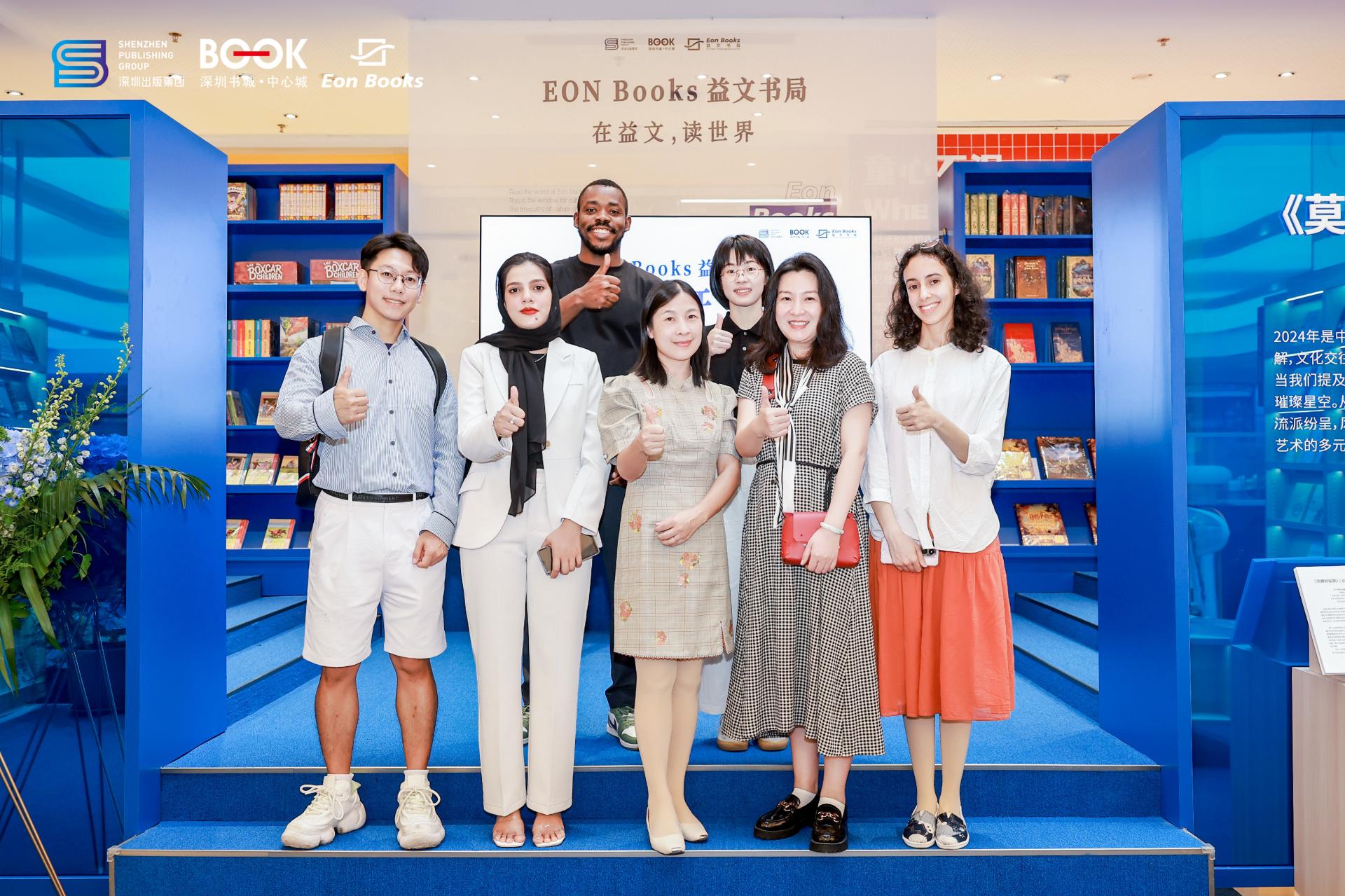 6 月 7 日上午,EON Books 益文书局的启动仪式在深圳书城中心城隆重举行。深圳市委宣传部、市政府外事办、福田区委宣传部、深圳大学、深圳出版集团等单位的代表纷纷出席了启动仪式,与市民读者代表、国际友人代表以及学生代表共同见证了益文书局的正式开启。我院副书记秦晴女士以及国际学生发展中心、“一带一路”国际学生双创基地负责人陈默老师,还有首批深圳大学来华留学生作为文化分享官也受邀参加了此次仪式。活动现场充满着轻松愉悦的氛围,大家沉浸在悠扬的琴声中,并用中、法、英等多种语言愉快地交谈,一同感受着世界文化与文学艺术的美妙。益文书局凭借其丰富的外文原版图书和浓郁的中华文化特色,成功打造出国际化阅读空间,备受赞誉。在启动仪式上,来自法国的 Imane(伊曼)和 Boris 与出版社编辑邱秋卡共同带来了《莫娜的眼睛》节选朗诵,现场朗诵时还配合了小提琴的演奏,为观众呈上了一场视听盛宴。此外,当日下午还举办了“共读世界文学”活动,两位法国留学生 Imane(伊曼)和 Boris 以及韩国的留学博士申文燮、巴基斯坦的留学博士 Chasheen 又与市民读者展开了热烈交流,他们分享了对印象派、古典主义等作品的见解,共同探讨了法国文学艺术的独特魅力。