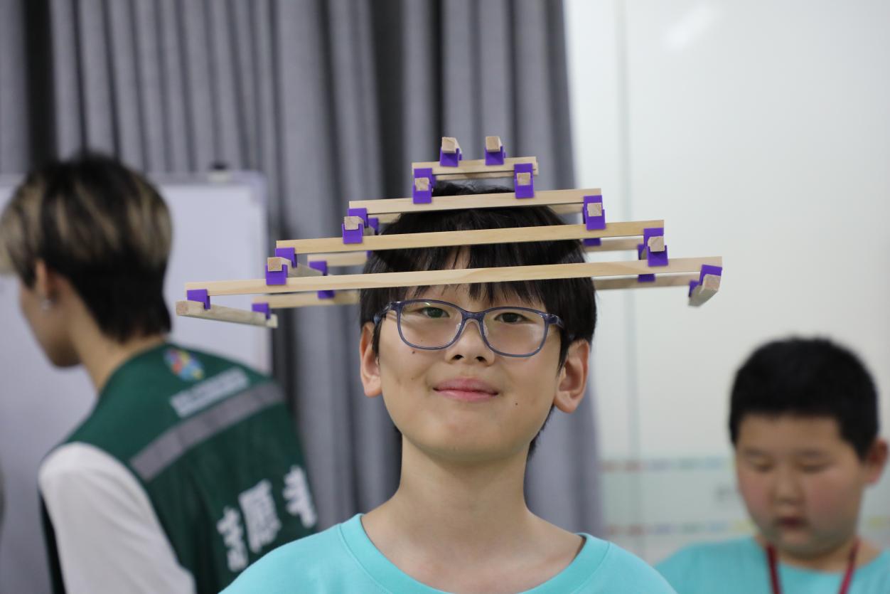 紧接着,在老师的悉心指导下,小朋友们纷纷动手实践,利用拼接组件这一有趣的材料,展开自己的建筑设计之旅。从简单的8个节点模型起步,他们逐步挑战更为复杂的设计,充分发挥想象力和创造力,不断探索和优化自己的作品。