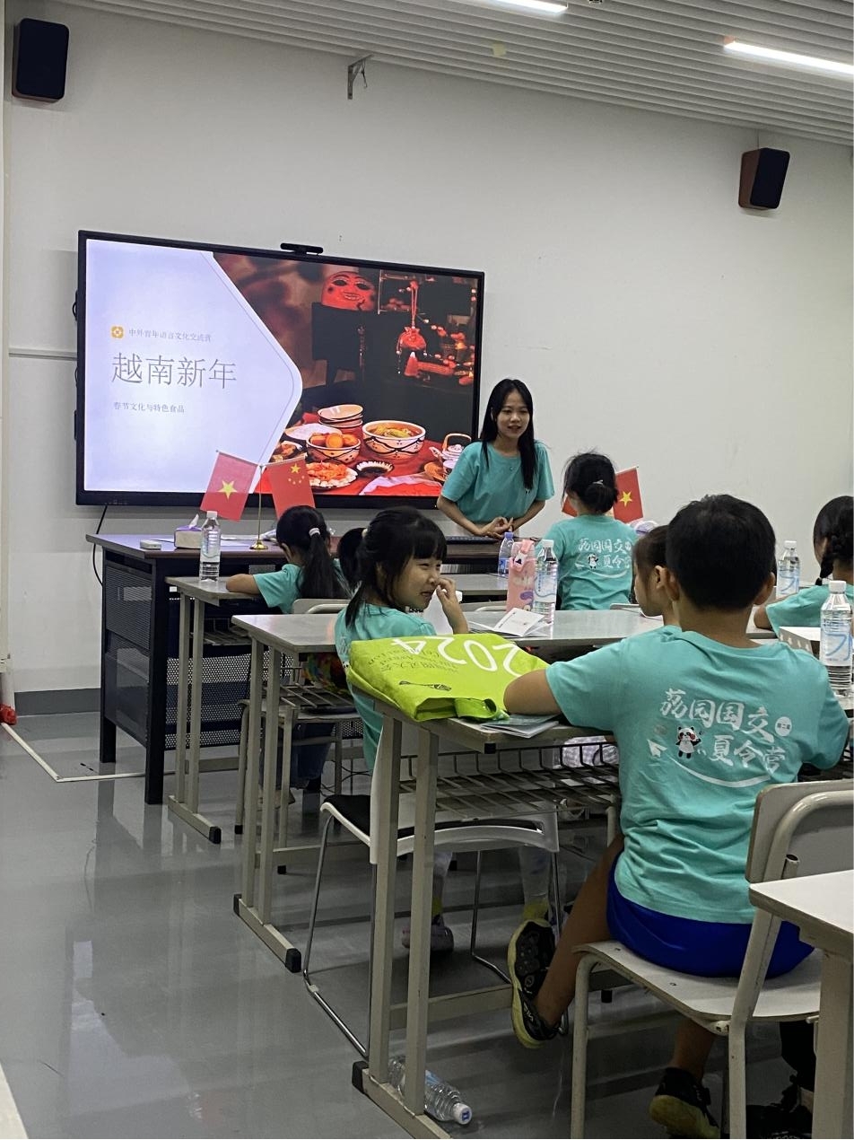 与此同时,大班的小朋友们在越南籍教师河宓(PHAM HA MY)的悉心引领下,踏上了一场探索越南文化的奇妙之旅。他们不仅深入了解了越南的地理风貌、基础语言体系以及丰富多彩的新年传统,还兴致勃勃地学习了地道的越南问候语,仿佛瞬间跨越了国界,与越南的亲切氛围紧密相连。通过一系列生动有趣的互动,小朋友们亲身体验了越南新年的独特魅力,从庆祝灶王节的虔诚仪式,到亲手包制充满异国情调的越南方粽子,再到接收寓意吉祥的红包,每一项活动都让他们兴奋不已,对越南文化的兴趣愈发浓厚。这一过程不仅拓宽了他们的国际视野,更在无形中培养了他们的跨文化沟通能力与尊重多元文化的价值观。