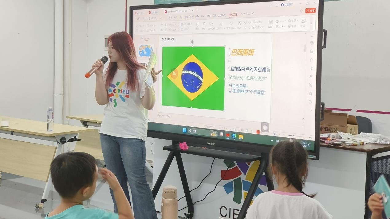 2:00至3:30,小班的小朋友们在巴西留学生王佐丹(QIU WANG ZUO DAN)的引领下,踏上了一段热情洋溢的巴西之旅。他们不仅了解了巴西的国旗、国鸟、首都巴西利亚以及货币雷亚尔的基本知识,更深入地探索了巴西独特的足球和咖啡文化,仿佛亲身感受到了狂欢节的热烈氛围。王佐丹的生动介绍让孩子们对巴西的传统美食产生了浓厚的兴趣,他们仿佛已经品尝到了那些令人垂涎欲滴的佳肴。此外,小朋友们还学习了基本的葡萄牙语问候语,这不仅增加了他们的语言技能,更让他们感受到了巴西独特的语言魅力。