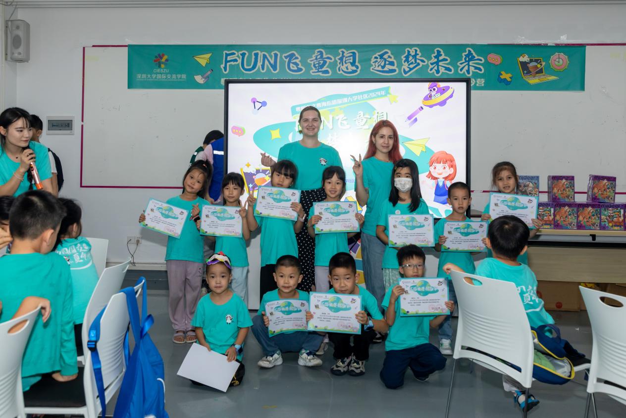 接下来,担任授课老师的留学生们,依次为每位小朋友颁发了结业证书,并与他们一同送上了精心准备的惊喜礼物。结业证书如同一部时光的纪录片,它记载着小朋友们参与夏令营的点点滴滴,见证了他们从稚嫩到成熟的每一步成长和变化。它是五天来他们努力学习、不断探索的最好证明。而那些充满心意的惊喜礼物,则是对小朋友们五天来坚持与努力的最好肯定与鼓励,寓意着他们未来的道路将充满无限可能。
