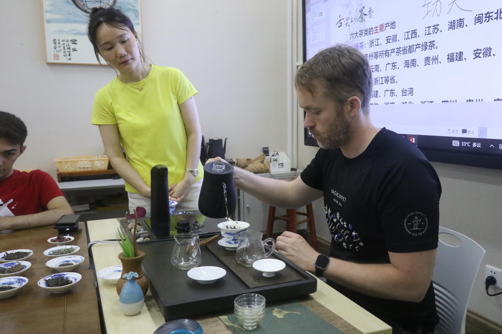 应斯文(瑞典):在众多中华文化活动中,我最喜欢茶文化课,因为茶很普遍,很多人都喝茶,但是通过这节课,让我对茶有了更深的了解,包括茶的种类,不同的茶有不同的泡法等等。中医体验也是我印象最深的活动,因为它减轻了我腿部的疼痛,我从未想过中医的效果会这么好,我相信我还会再去中医院的。