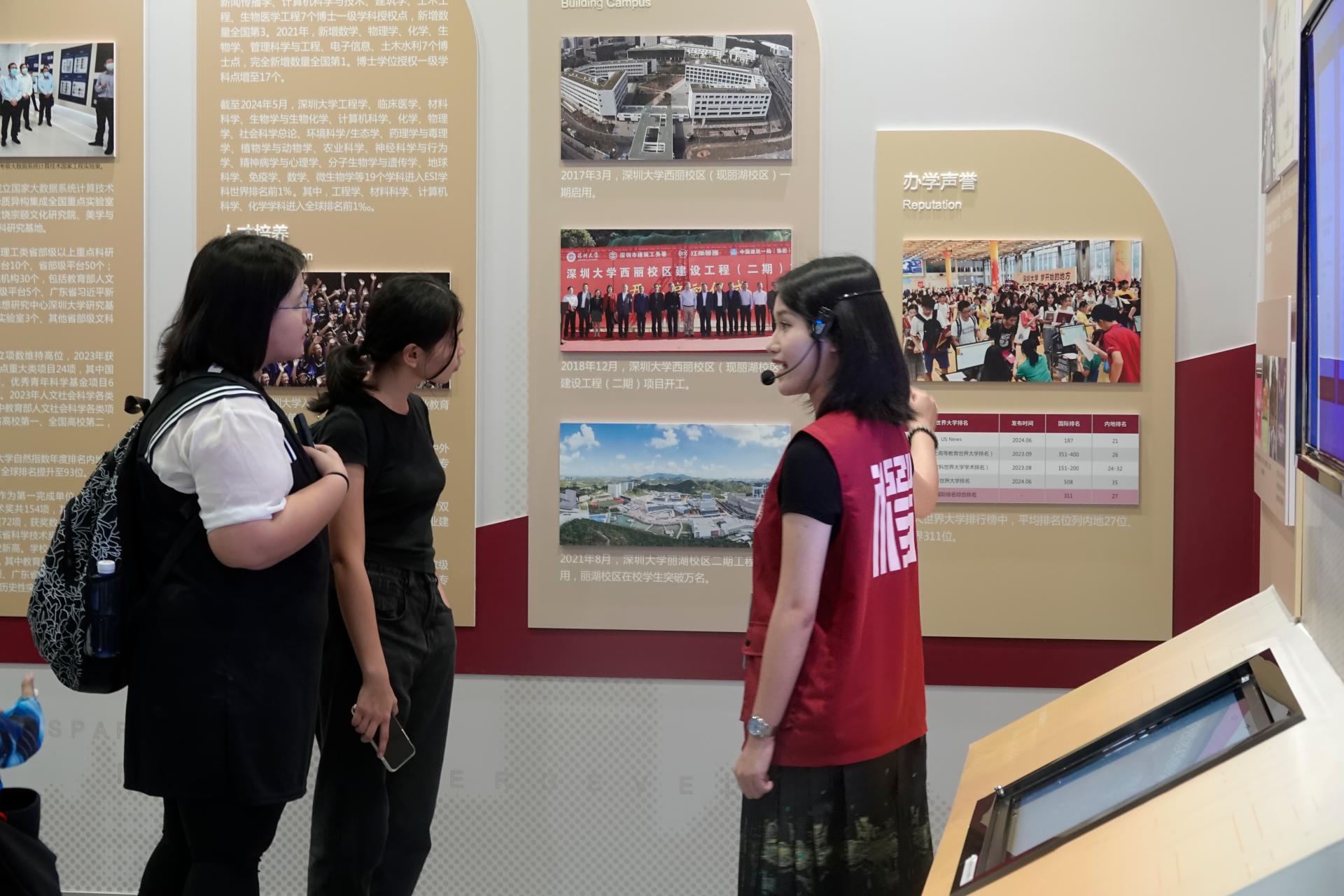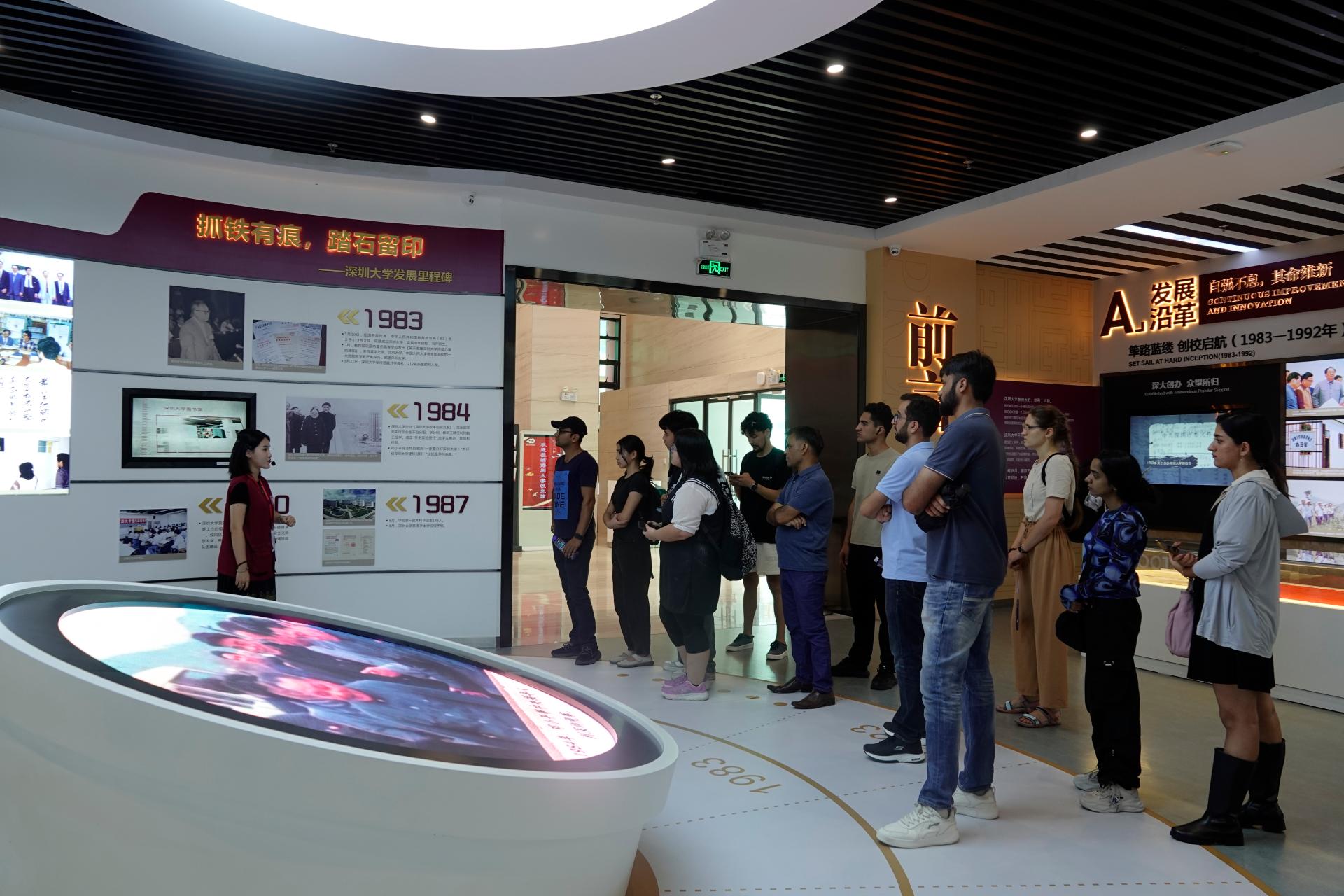 在讲解员的引导下,新生们依次参观了各个展厅。在“创业维艰”展厅,他们了解了深圳大学在改革开放大潮中应运而生、勇立潮头的历史背景;在“学科发展”展厅,则见证了学校各学科专业从无到有、从弱到强的成长历程;而“国际交流”展厅则展示了深圳大学与全球众多高校及机构建立的广泛合作与交流,让国际学生们感受到了学校在国际教育舞台上的活跃身影。