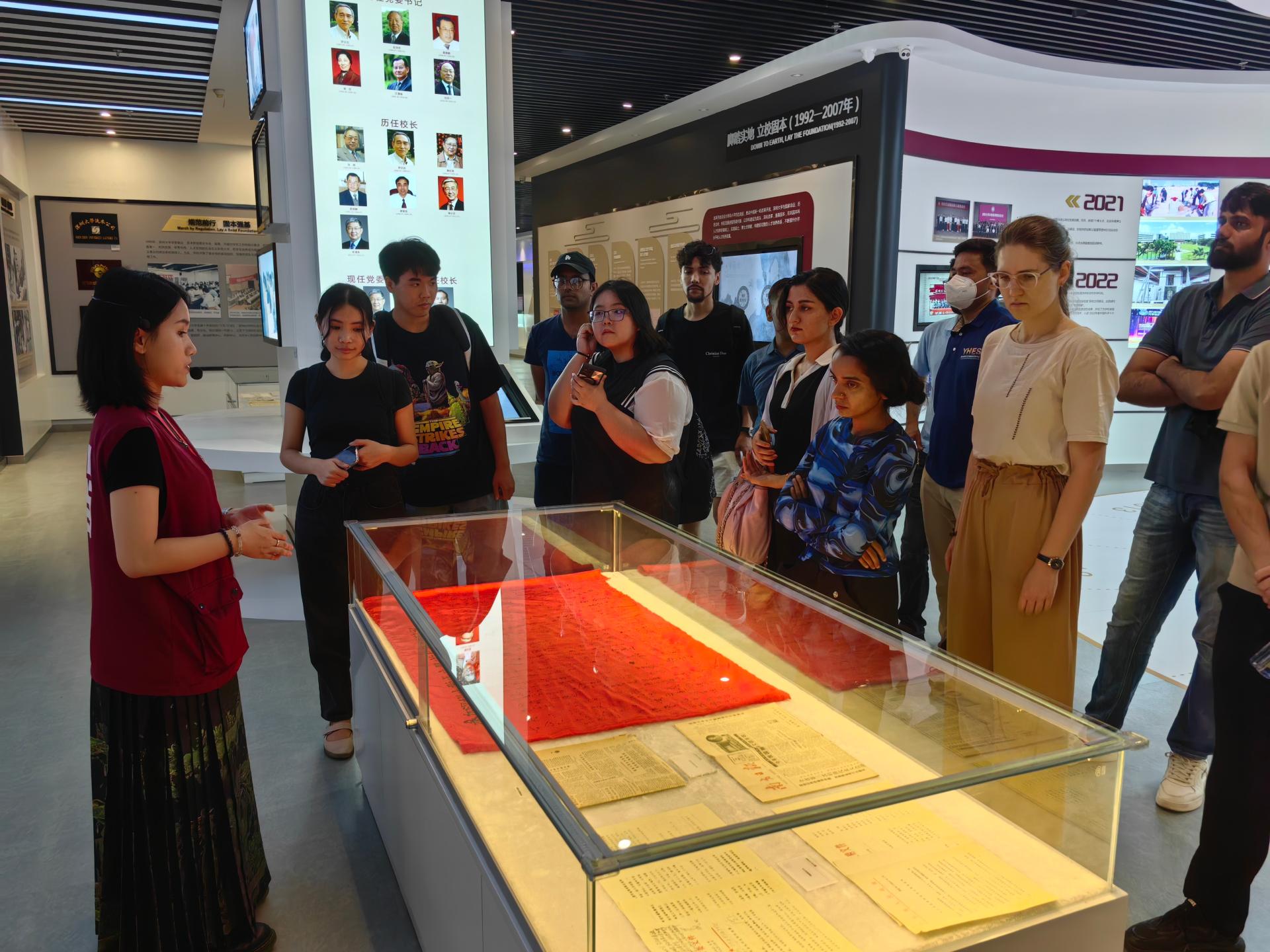 来自世界各地的国际新生在学院老师的带领下,满怀好奇与期待地踏上了前往校史馆的旅程。深圳大学校史馆,作为展示学校发展历程、教育理念及成就的重要场所,不仅收藏了丰富的历史文物和珍贵资料,更是学校文化传承与创新的重要阵地。