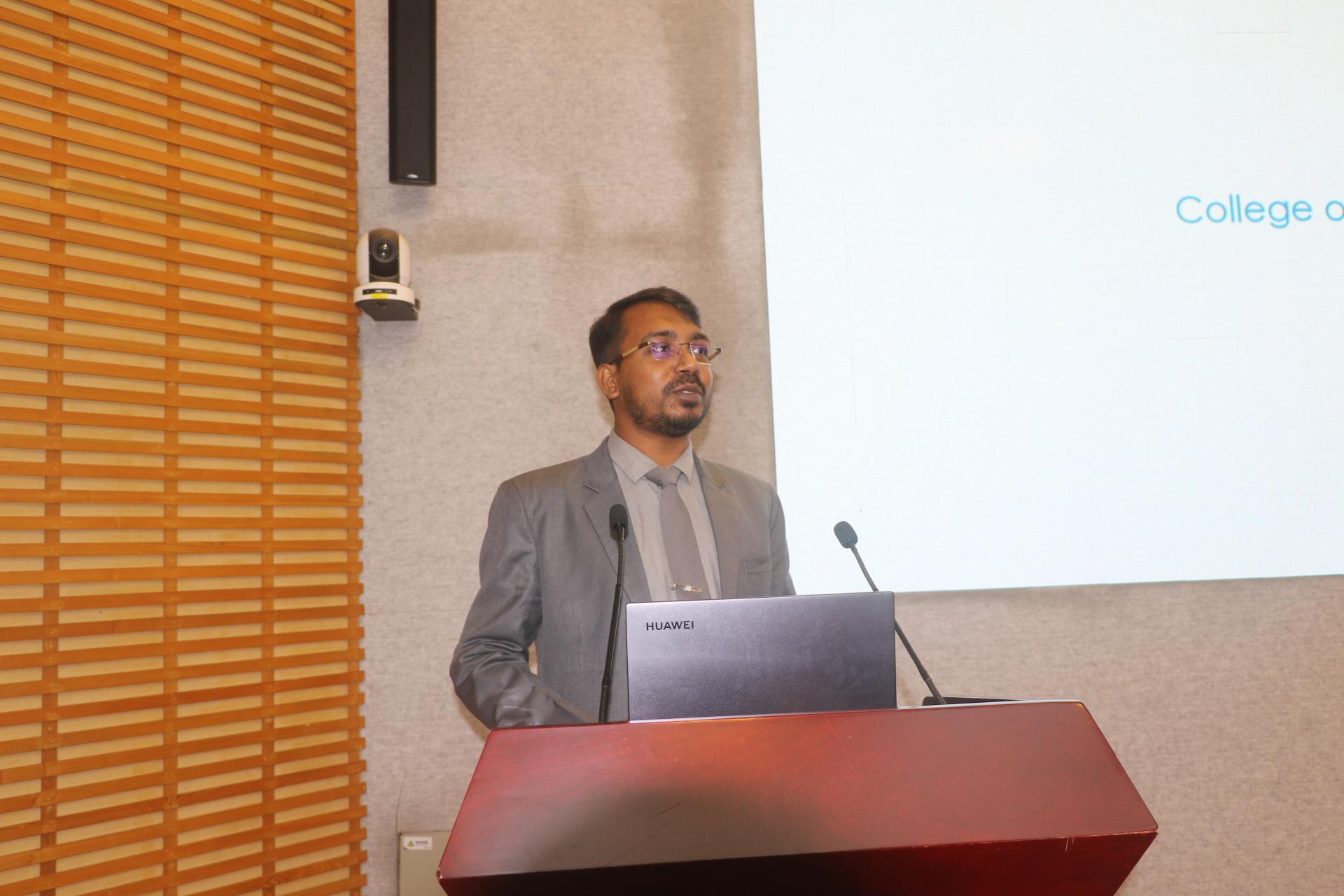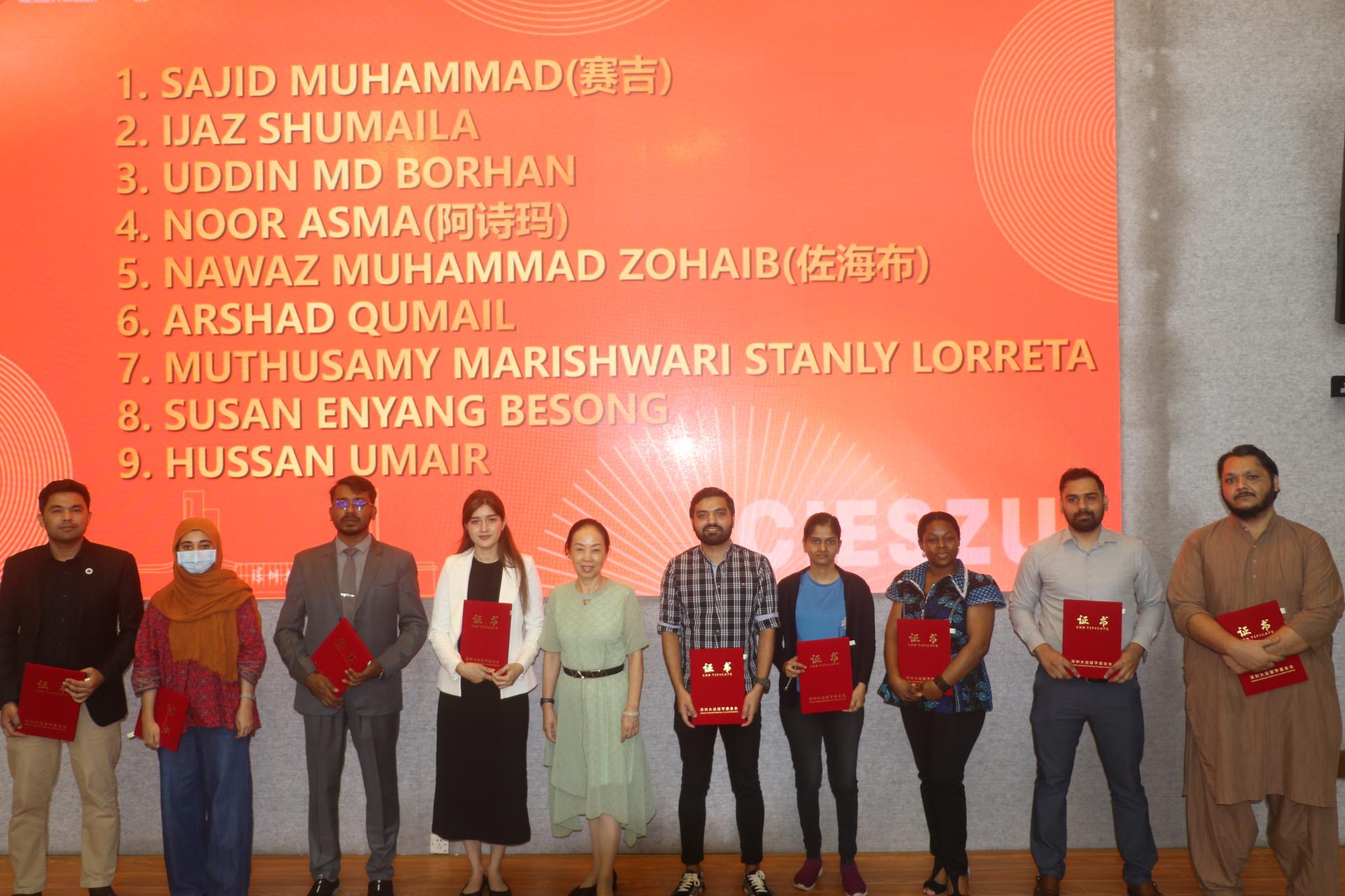 证书颁发结束后,两位优秀获奖学生代表发表了获奖感言。来自孟加拉的博士生UDDIN MD BORHAN,他表达了对深圳大运留学基金、学校和老师们的感谢,并表示获得该项奖励给予了自己极大的动力,将在今后的学习中更加勤奋、努力,认真学习专业知识,不断完善自己,为自己今后的学业和职业发展打下良好的基础。同时他还分享了自己的奖学金申请经验和科研发表经历,鼓励新生努力学习积极申请奖学金。来自俄罗斯的本科生SHAMSUTDINOVA YANA在发言中对老师和同学表达了最真诚的感谢,并分享了自己在中国的学习和生活经历,她表示获得这项奖学金,不仅是对她努力的认可,更是一种激励,她会继续努力学习,不断提升自己。