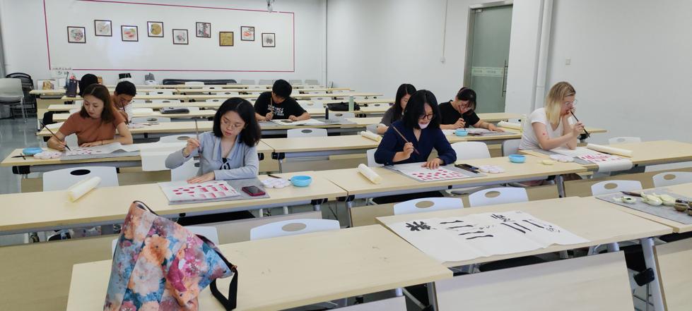 拳法如诗,笔法如剑,皆需用心感悟。九月底,武术与书法两个小团体首次公开亮相,为在场的留学生们带来了一场精彩的视听盛宴。武术之精髓,在于锻炼身心,内外兼修,以力量提升自我,武术小组中的两位武术导师以刚劲有力的动作,一招一式地传授着中华武术的精髓。学生们在导师的指导下,努力学习从基础拳法到腿法,不仅要练习拳架的稳定,还要学会连贯的动作。在一次次不断挑战自我、突破极限的学习中,留学生们深深地感受到了中华武术的力量与技巧之美。