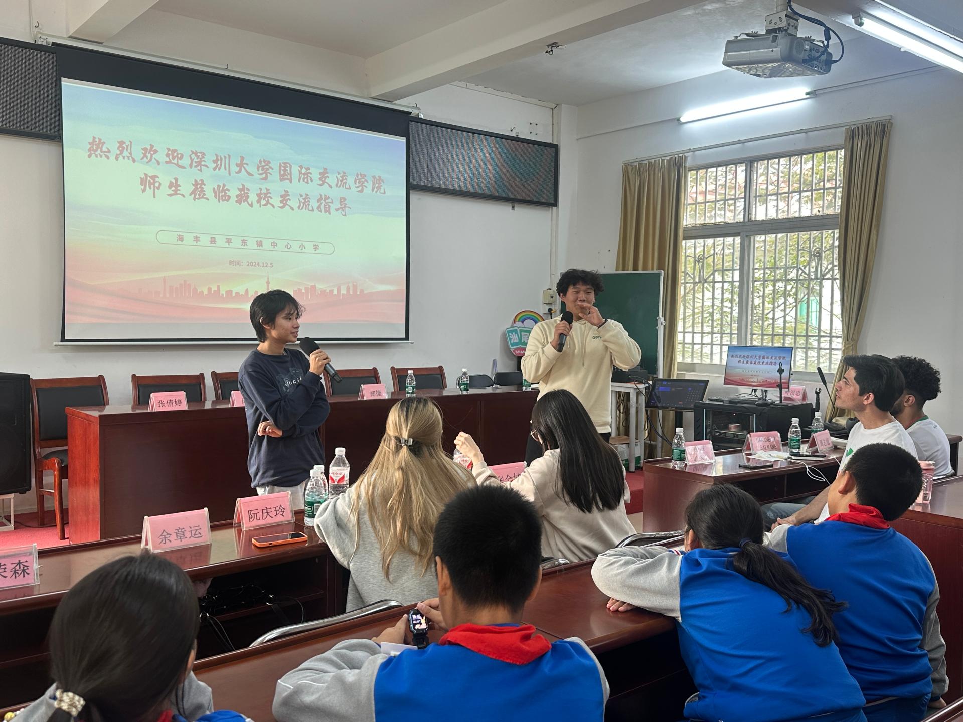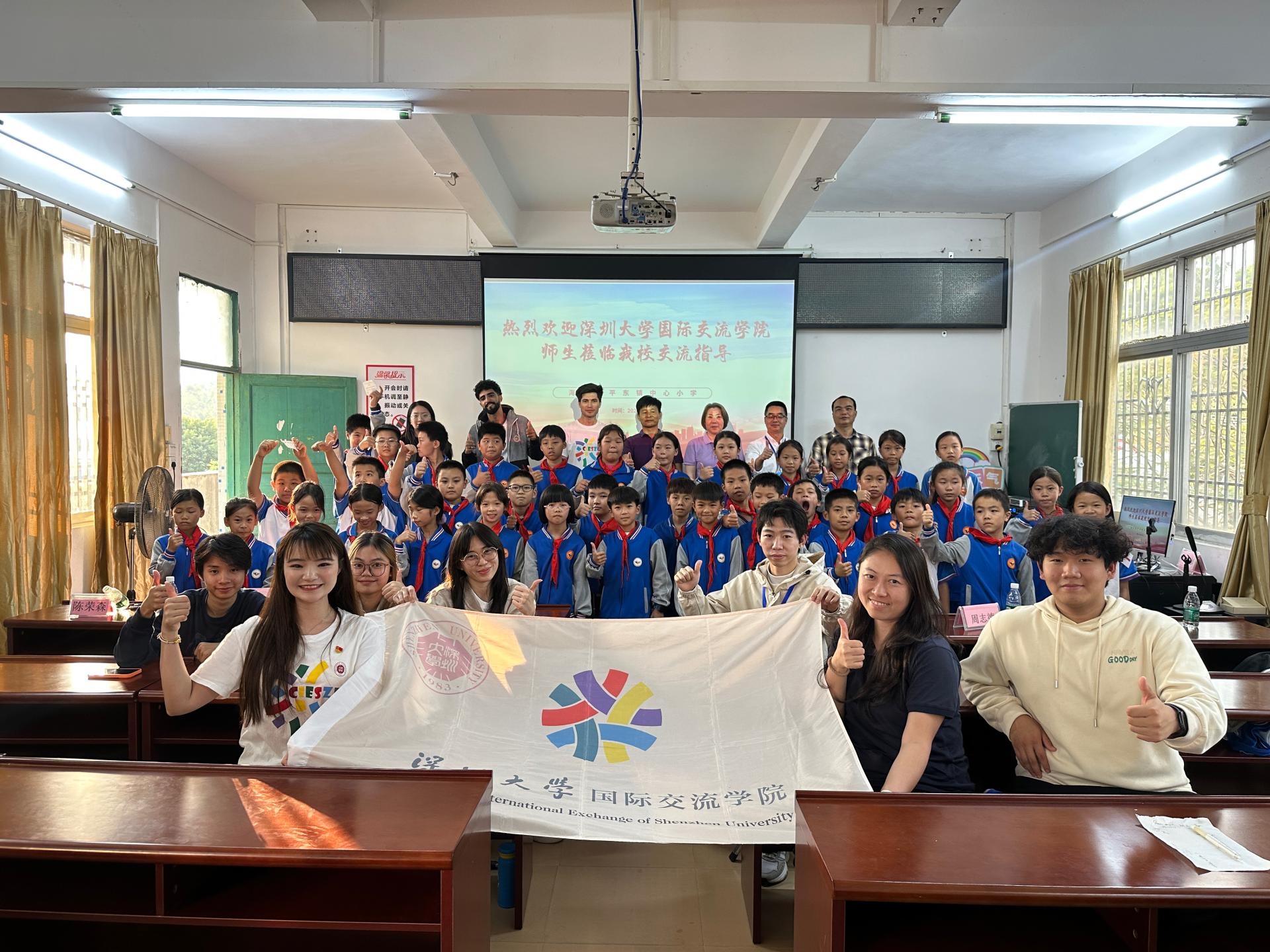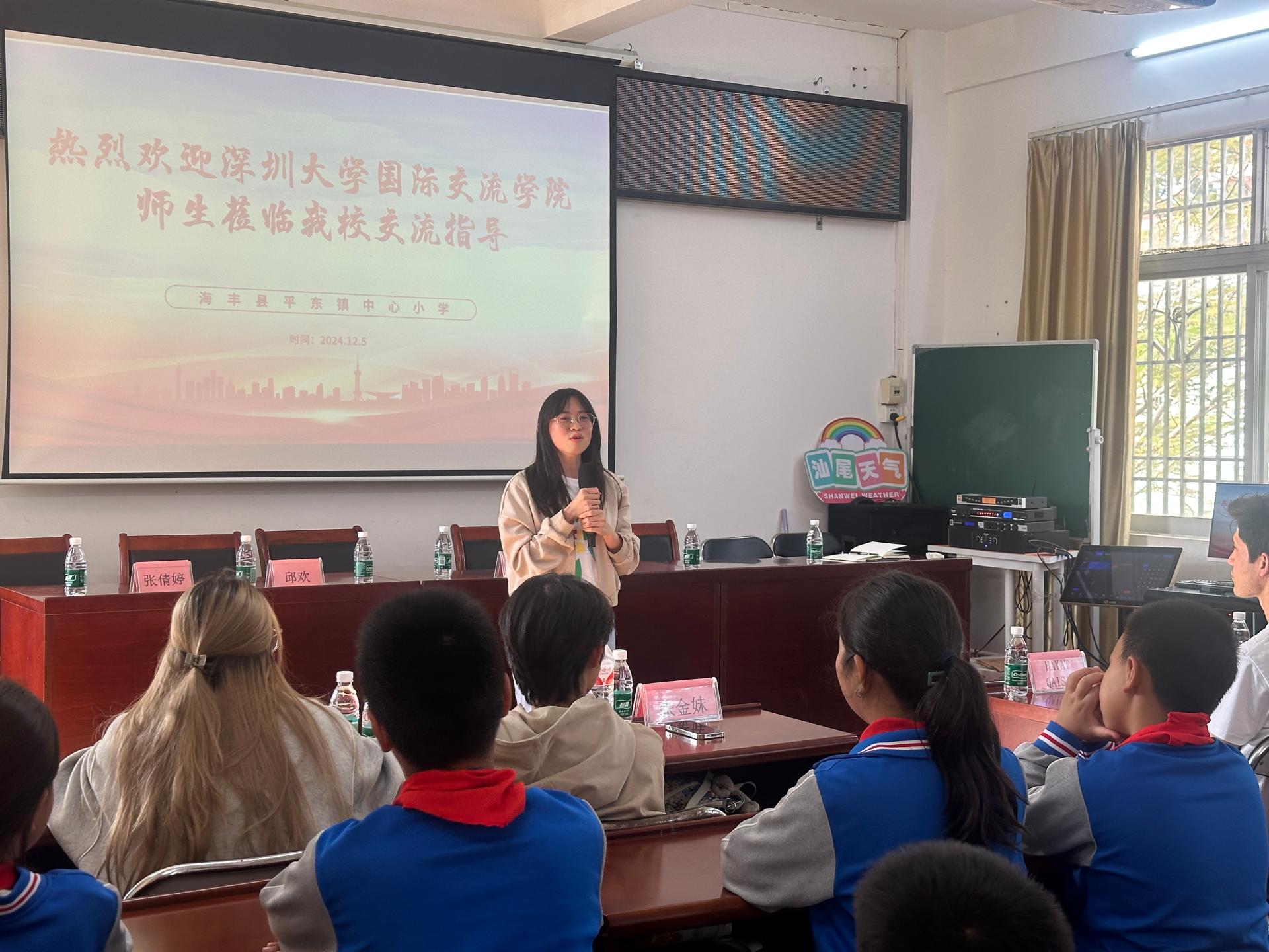 为落实省委、省政府及教育厅关于“双百行动”工作要求,推进结对共建工作。2024年12月5日,深圳大学国际交流学院副院长郑捷、邱欢老师、张倩婷老师和六位来自摩洛哥、越南、巴基斯坦、缅甸、泰国的国际学生,前往海丰县附城新山村及平东镇中心小学,体验红色海丰革命精神,开展文化交流体验活动。