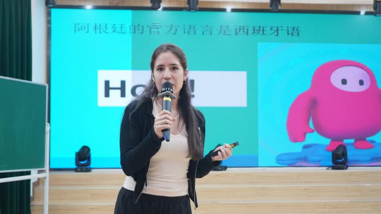 阿根廷留学生路辰霄(BAIGORRIA LUCIA ANDREA),为学校师生带来了一场精彩纷呈的文化分享盛会。路辰霄运用她流利的中英双语能力、生动的表达和幽默的讲解,为学生们营造了一个轻松愉悦的学习环境。在她的带领下,学生们仿佛亲临其境,深入了解了阿根廷的主要城市,学习了基础西班牙语,领略了阿根廷的自然风光、社会生活和美食文化。