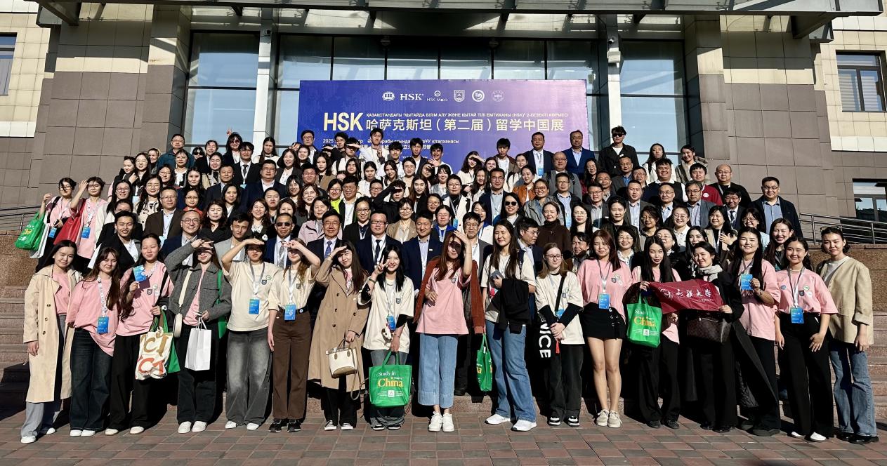 4月20日,哈萨克斯坦(第二届)HSK留学中国教育展在阿拉木图阿里·法拉比哈萨克国立大学图书馆举办,本次展会汇聚了北京大学、浙江大学、中山大学、深圳大学等33所中国知名大学,哈萨克国立大学校长图伊梅巴耶夫·詹赛伊特·坎塞伊托维奇、中国驻阿拉木图总领事馆教育领事黄晓敏、汉考国际副总经理刘小龙以及中国参展高校代表等400余名嘉宾出席开幕仪式,展会当天近3000名哈萨克斯坦中文学习者、HSK考生及教师、家长前来观展。