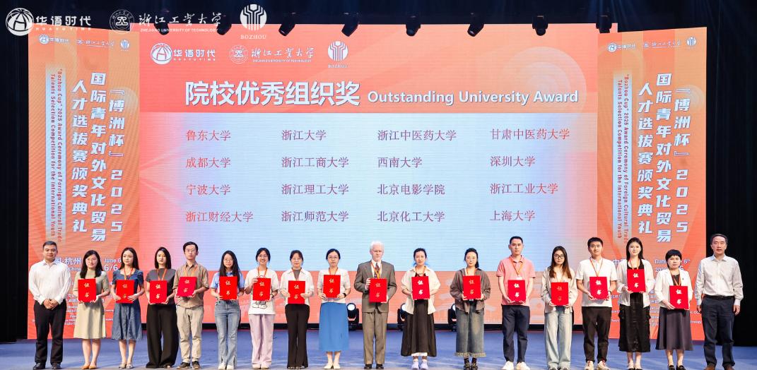 6月6日,"博洲杯"2025国际青年对外文化贸易人才选拔赛颁奖盛典在浙江工业大学隆重举行。本次大赛由华语教学出版社、中国外文局文化传播中心联合主办,吸引全球86个国家和地区400余名来华留学生参赛,通过视频创作展现跨文化理解力。深圳大学代表队凭借卓越表现,斩获1项团体大奖+4项个人殊荣,成为活动现场焦点。