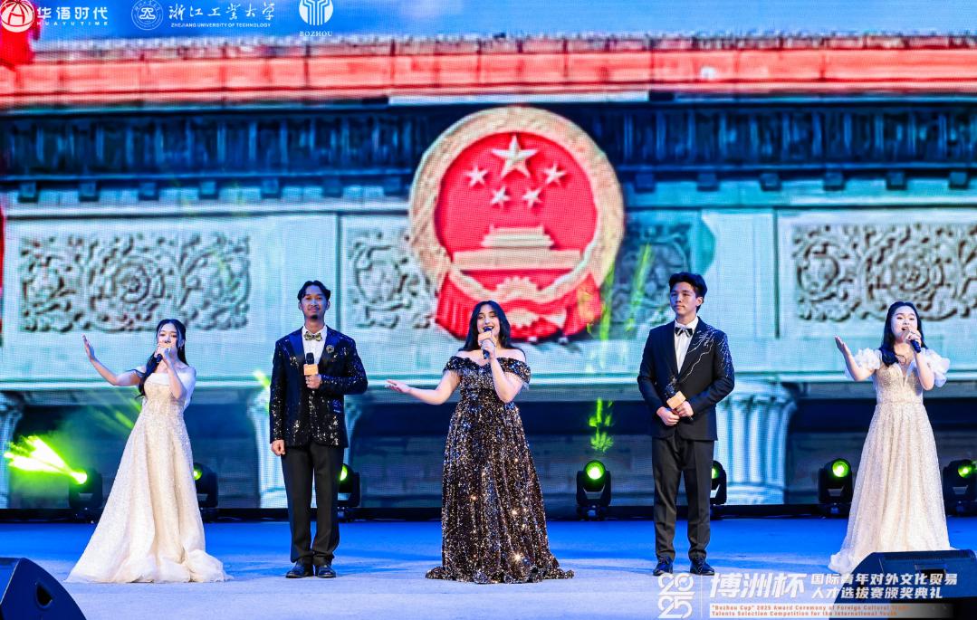 留学生代表在颁奖典礼上演唱中文歌曲