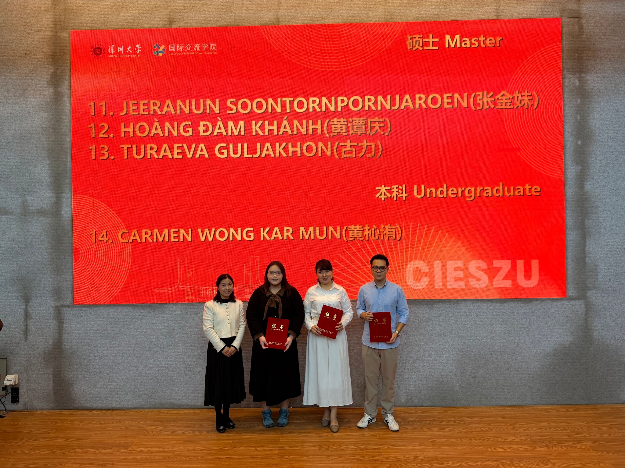 深圳大学始终高度重视国际教育交流工作,通过完善奖学金体系、搭建学术交流平台、优化留学服务等举措,为全球学子营造了优质的求学环境。此次大运奖学金的颁发,不仅是对获奖留学生个人努力的肯定,更是对学校国际教育成果的认可,将进一步推动学校国际教育事业持续健康发展,吸引更多优秀国际学子前来追梦。