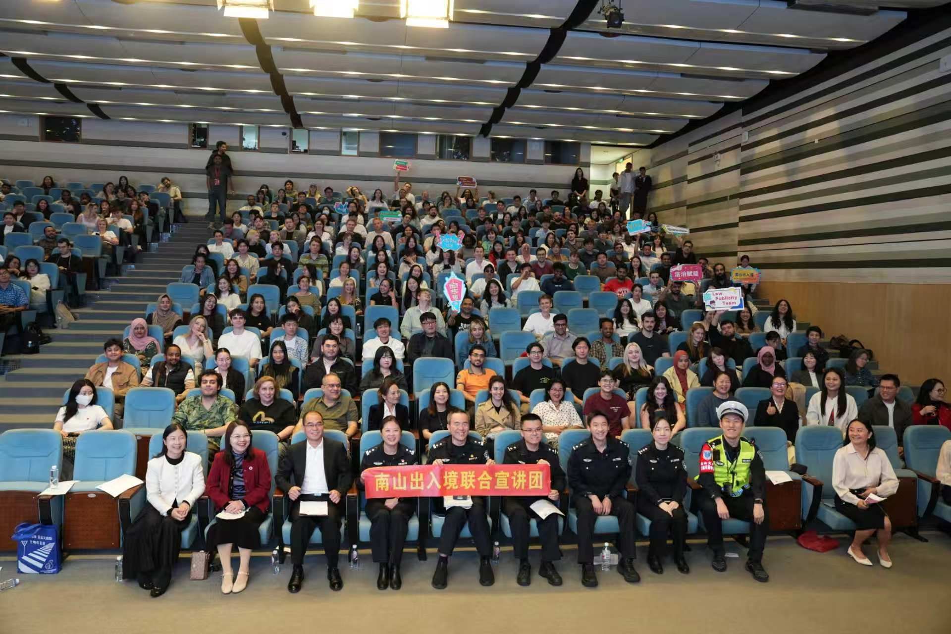 本次2026年春季新生入学教育在汇星楼一号报告厅举行,特别邀请南山公安局出入境管理警察、交通警察现场开展法律法规宣讲,结合国际学生在华学习生活实际,重点解读出入境管理政策、道路交通安全法规、在华日常活动注意事项等内容,通过典型案例讲解帮助外籍学生准确理解相关政策要求,避免出现违规情况。学院老师宣讲了新学期课程安排、考勤规定、校园安全教育、校纪校规等核心管理要求,详细解答了学生关于考核、校园服务等方面的疑问。