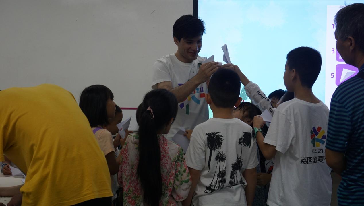日本的伊藤行辉老师(ITO KOKI)用他简单生动的肢体语言,带领小朋友踏上了通往精彩日本文化的认识之旅。不仅是饮食、习俗、卡通大家族的成员们,他还介绍了日本折纸文化。小朋友学习千纸鹤、青蛙,不亦乐乎。