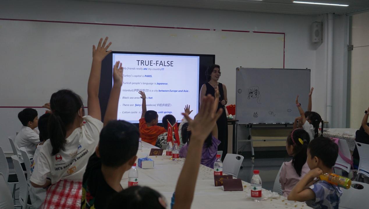 土耳其的阿诗玛老师(TOPRAK ESMA)深受小朋友们的喜爱。在她充满魅力的话语中,一幅描绘了“NAZAR BONCUĞU”,鞋子小偷,土耳其热气球,洞房子的华丽画卷在小朋友面前徐徐展开。通过阿诗玛老师妙趣横生的课堂,小朋友们对土耳其的文化和当地生活有了更生动形象的了解,课堂气氛分外欢乐。
