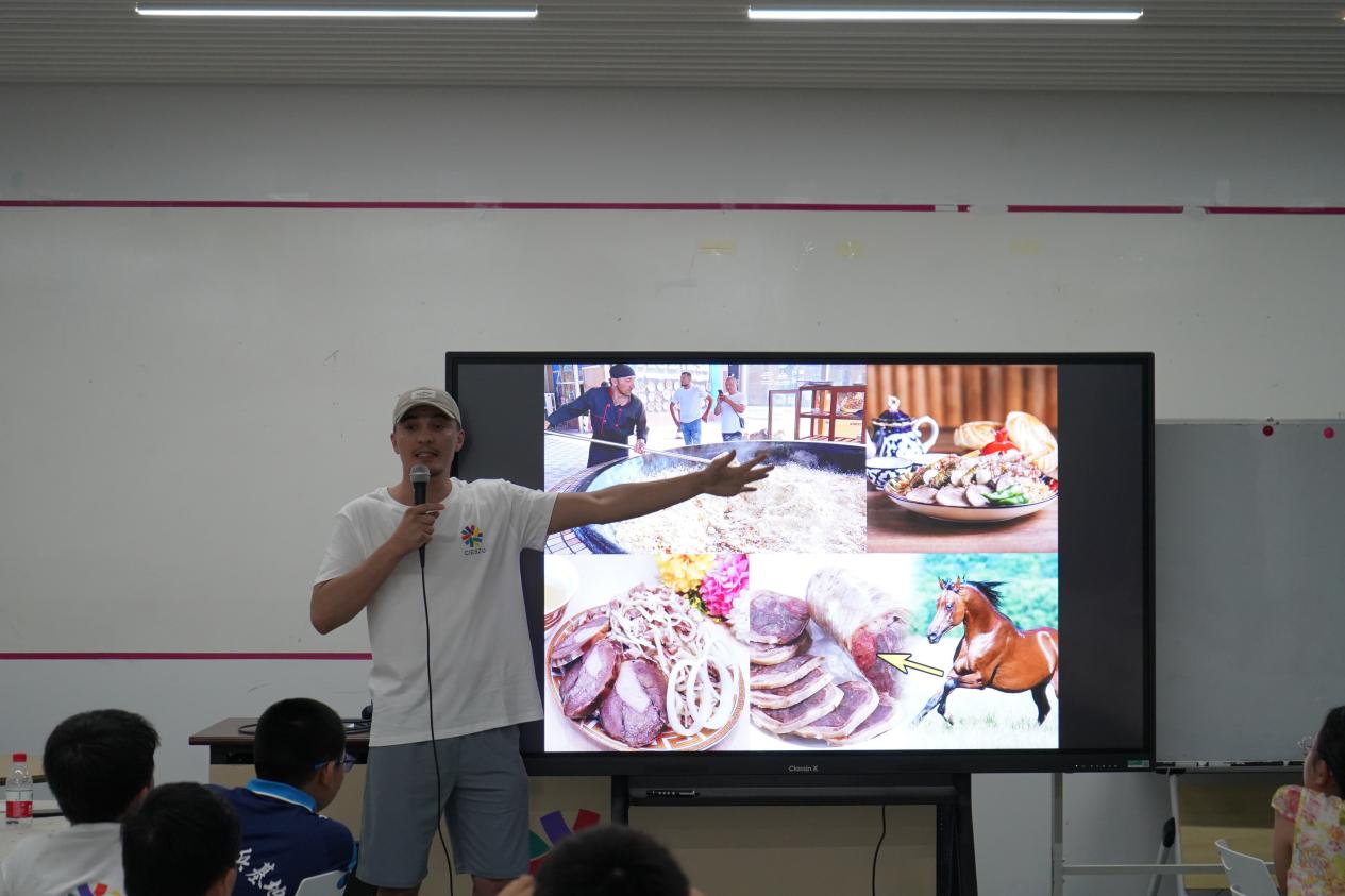 当撒马尔罕、布哈拉、还有各类乌兹别克斯坦传统美食呈现在小朋友眼前时,大家都非常惊喜。乌兹别克斯坦的湖山老师(PULATOV KHUSAN)准备了许多纯白的小国旗,小朋友们在国旗上绘制中乌友谊,绘制世界大地图,十分开心。