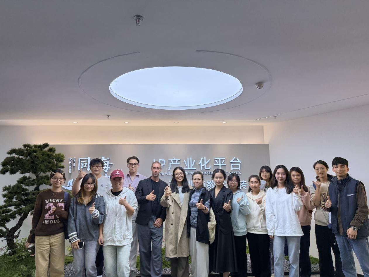 2025 年 11 月 14 日,深圳大学国际交流学院组织红色文化国际使团、粤品出海项目10 余名核心成员,前往深圳南山行业标杆企业海纳同舟开展参访交流。此次活动专为两类项目成员定制,聚焦 IP 孵化与流量运营核心领域,助力成员将跨文化交流、国际资源对接、本土品牌出海等专业特色与行业实践结合,在沉浸式体验中拓宽数字时代职业视野,收获可落地的技能与认知升级。