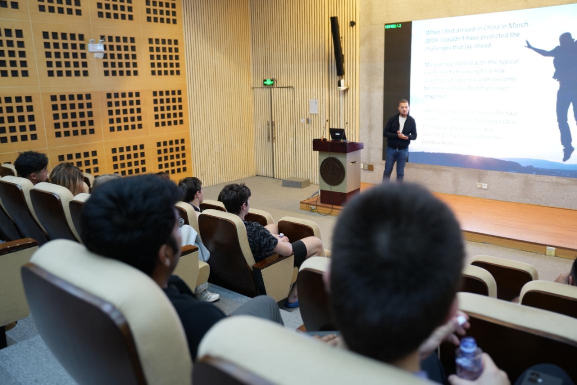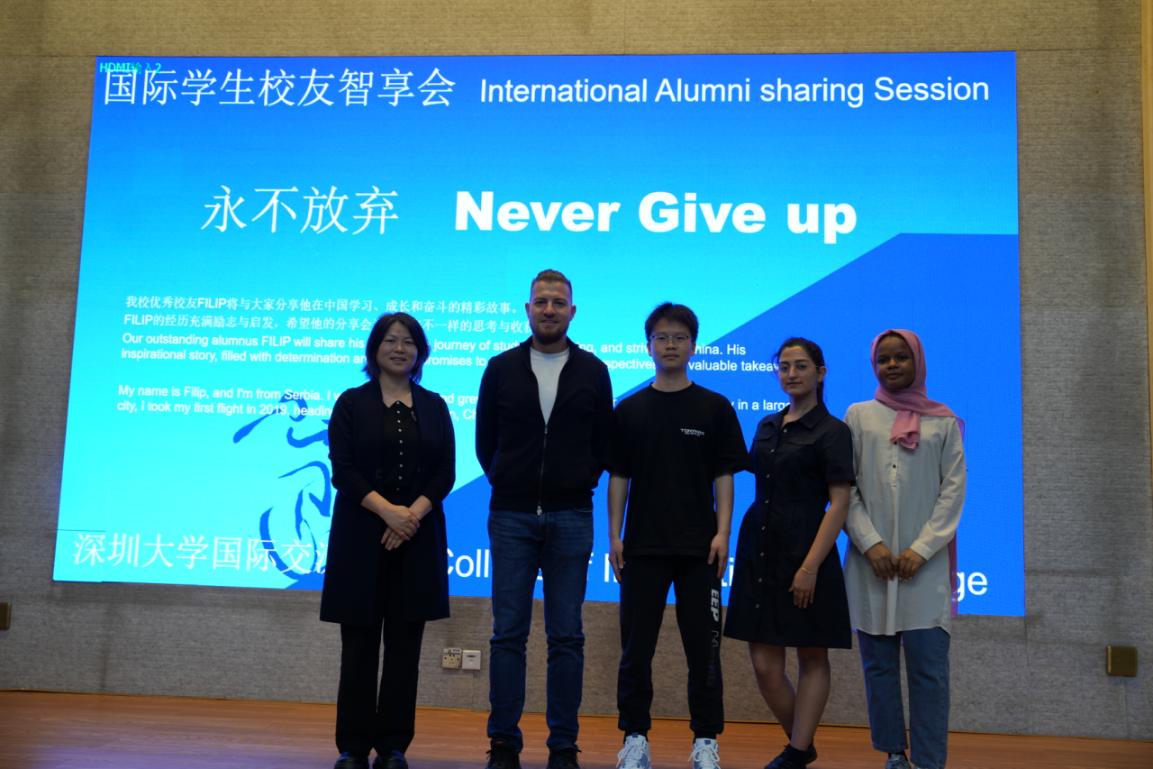 2024年4月3日,我院特邀优秀国际学生校友FILIP重返校园,以“永不放弃”为主题,为同学们带来一场生动的分享会。FILIP结合自身从求学汉语到在深圳职业发展的历程,展现了语言学习与跨文化适应带来的无限机遇,其真挚的讲述与脱稿演讲的自信风采,深深感染了在场每一位师生。